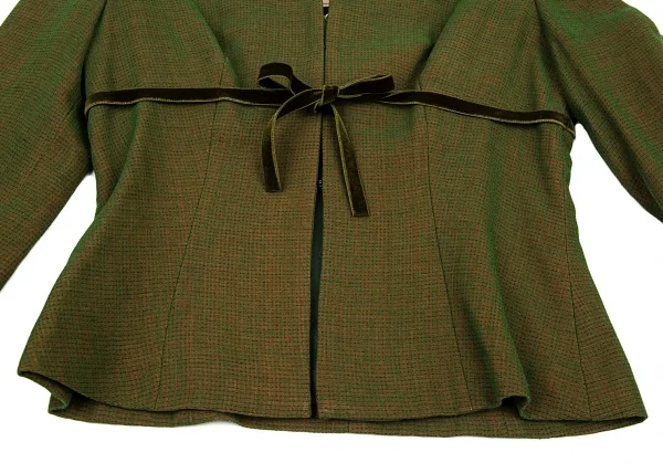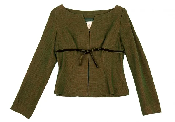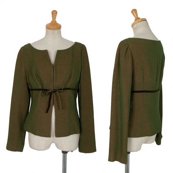 シビラSybilla ベロアリボンノーカラージャケット 玉虫抹茶40