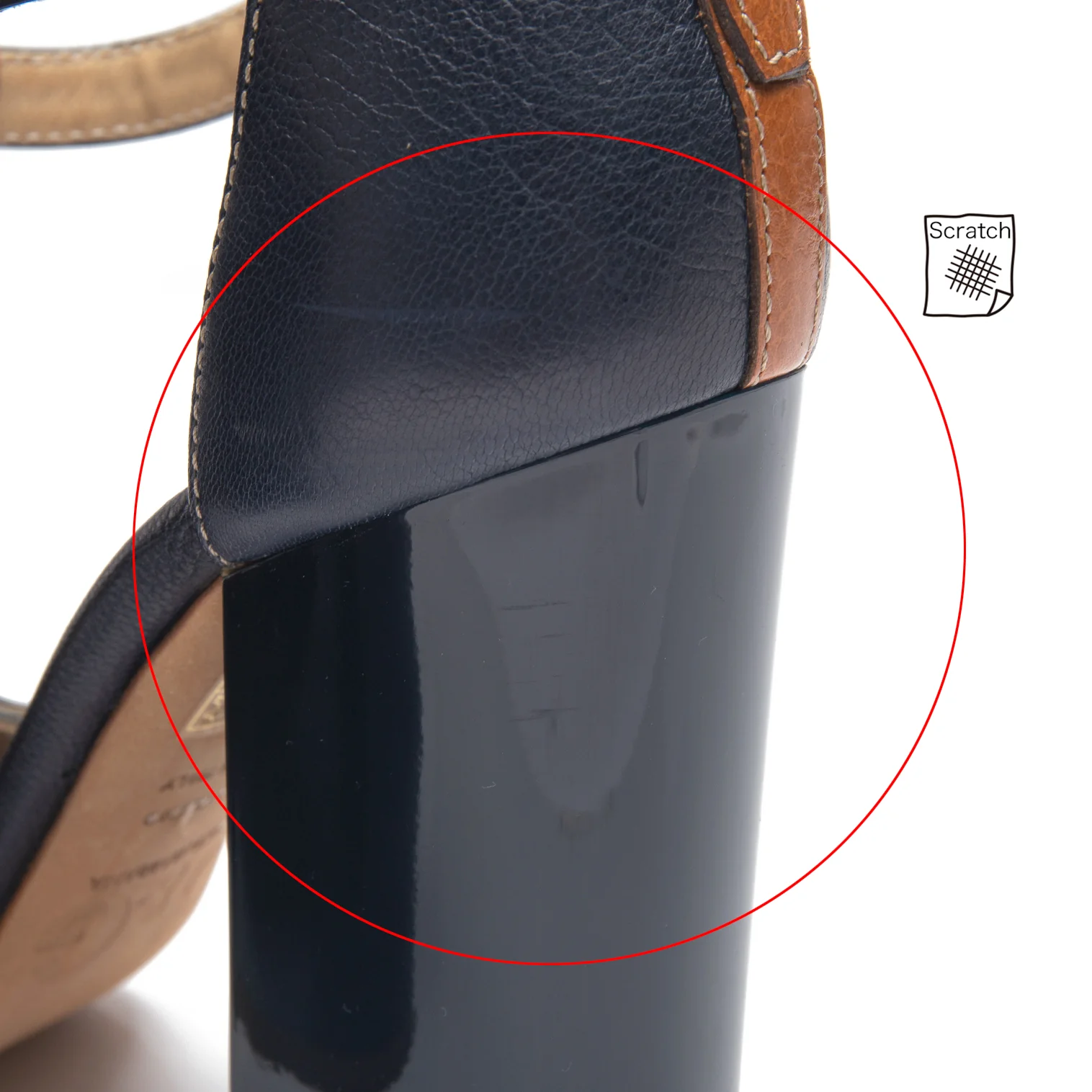 右足ヒールにスレがあります(写真参照)。その他、目立った傷や汚れなどなくいい状態です。