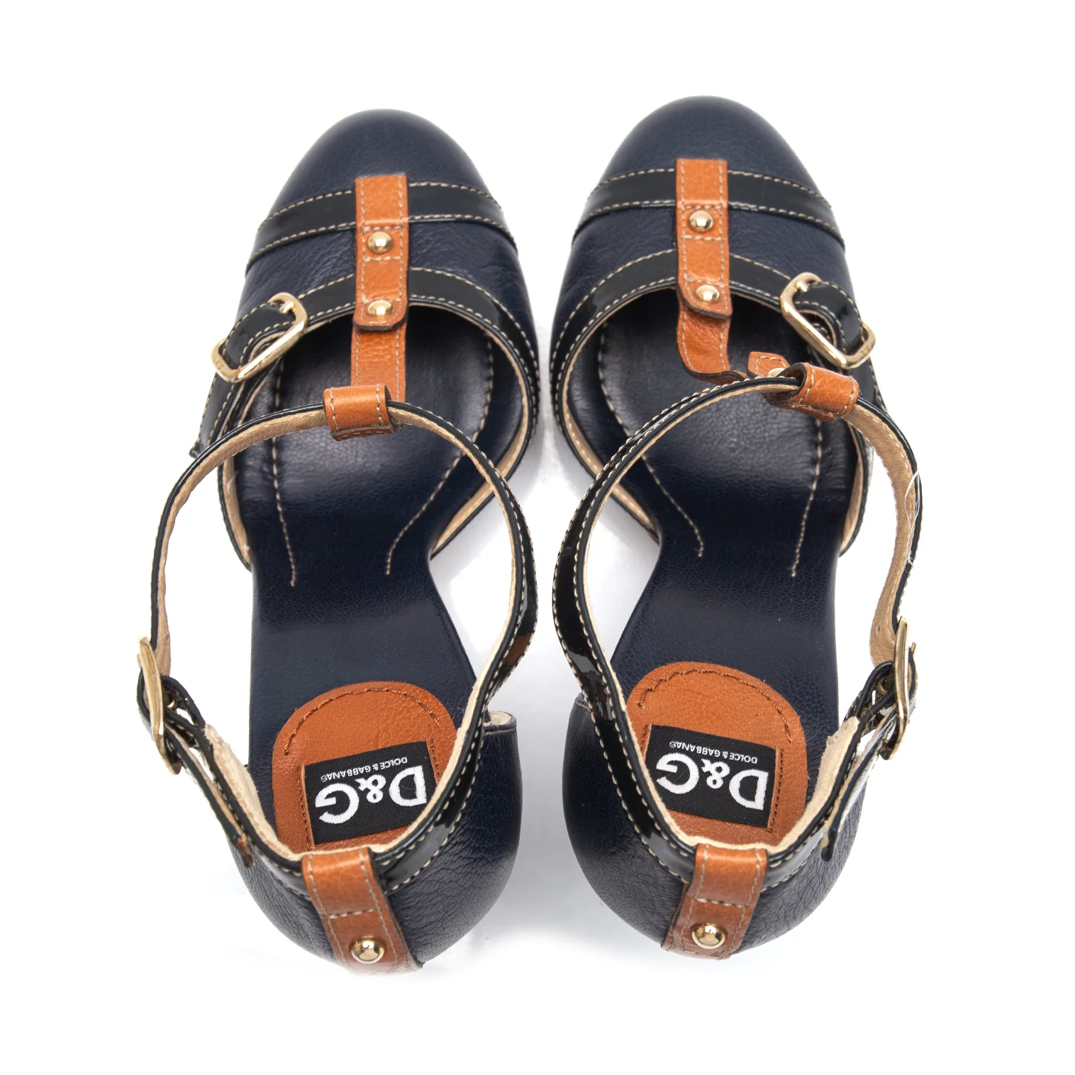 ディーアンドジーD&G チャンキーヒールベルトパンプス 紺38(24.5位)