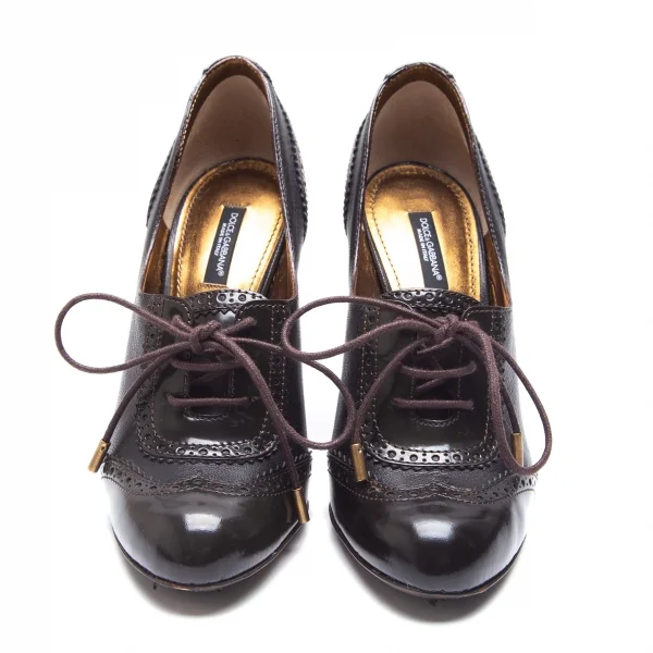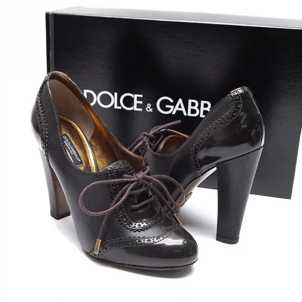 ドルチェ&ガッバーナDOLCE&GABBANA ハイヒールウイングチップシューズ 黒38 1/2(24.5位)