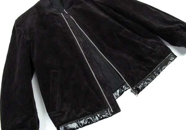 コムデギャルソン オムCOMME des GARCONS HOMME 裾エナメルレザーコーデュロイキルトジップブルゾン 黒M