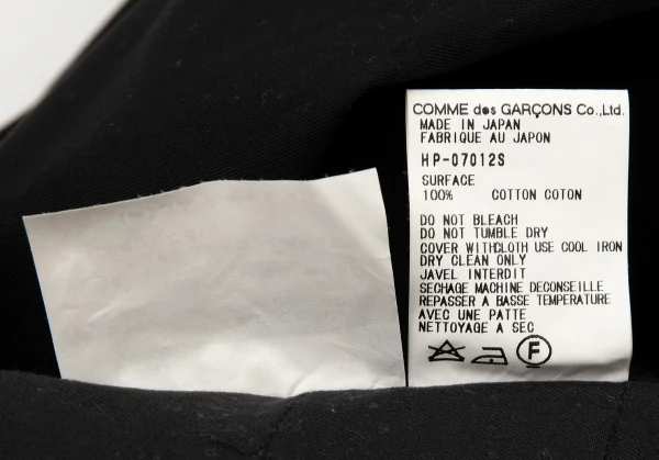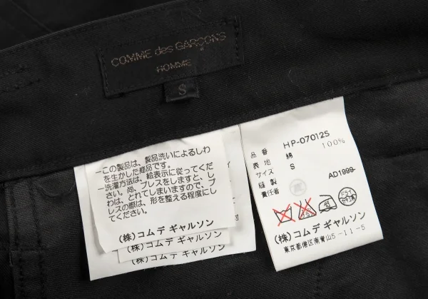 コムデギャルソンオムCOMME des GARCONS HOMME コットンギャバストレートパンツ 黒S