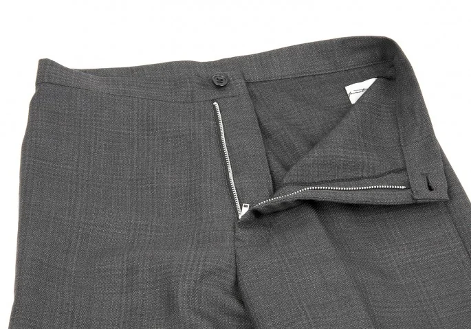 ヨウジヤマモトファムyohji yamamoto FEMME グレンチェックダブル裾ウールパンツ グレーSS