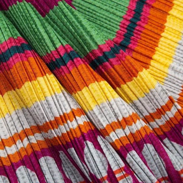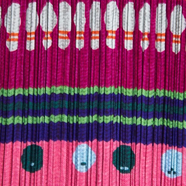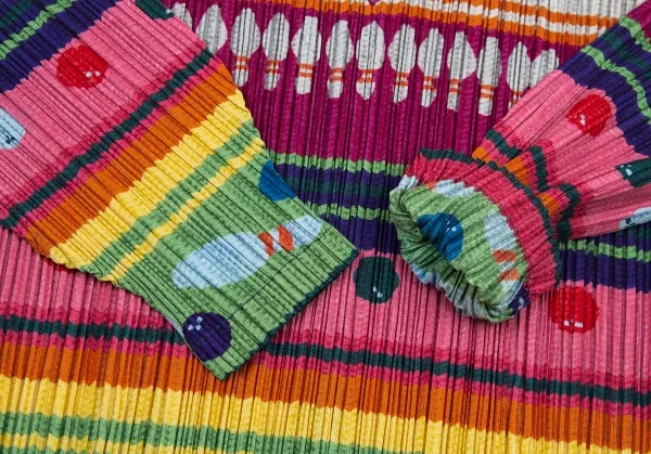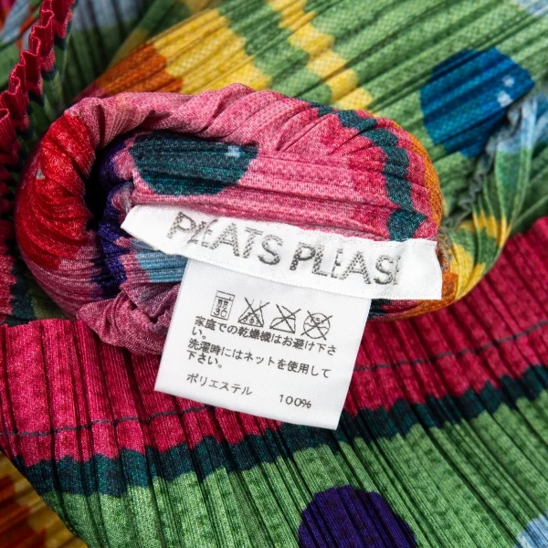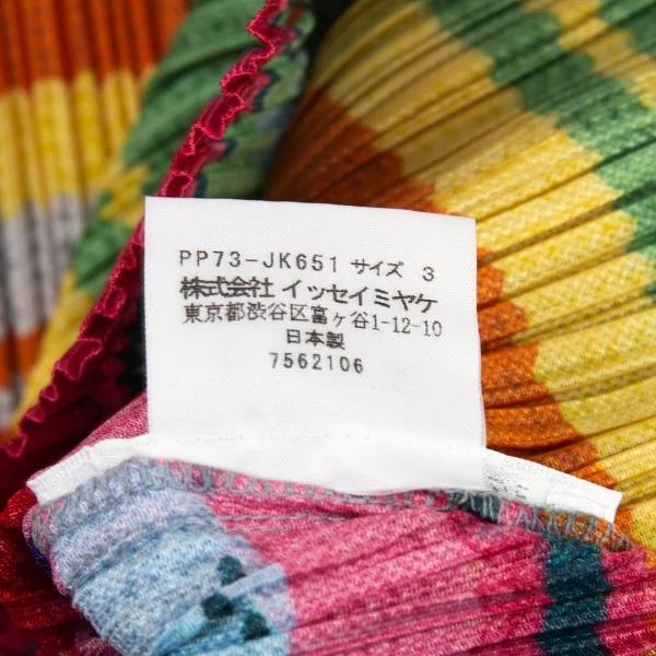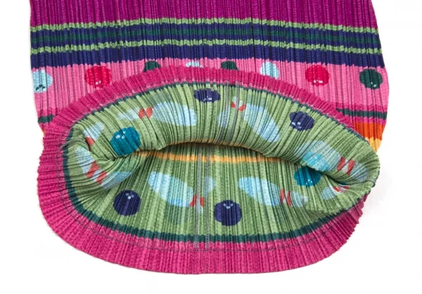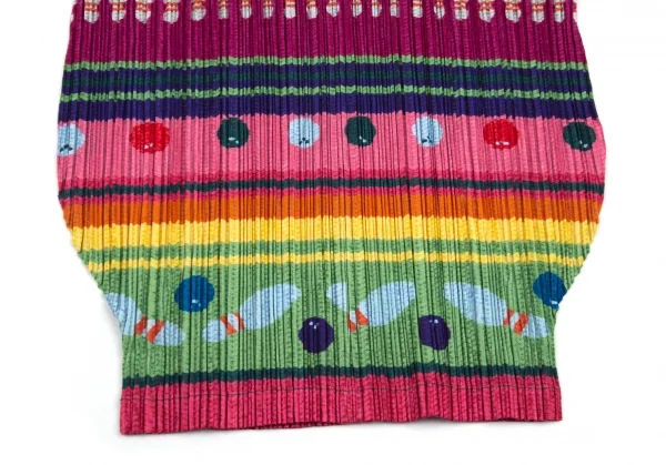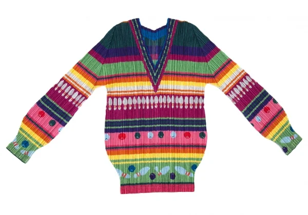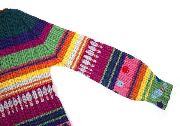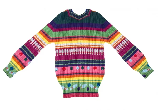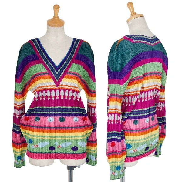 プリーツプリーズPLEATS PLEASE ボーリングボーダーニットプリントプリーツVネックカットソー マルチ3