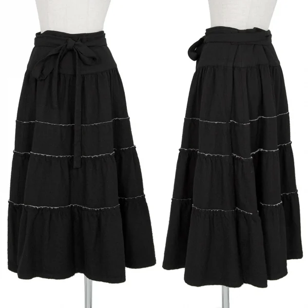 トリココムデギャルソンtricot COMME des GARCONS 製品染めウールティアード切替スカート 黒S