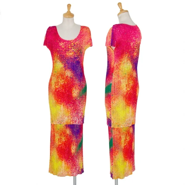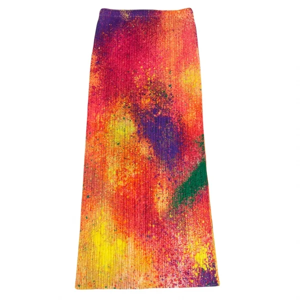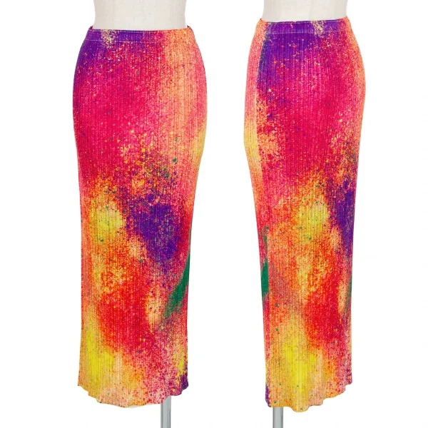 プリーツプリーズPLEATS PLEASE スプラッシュプリントプリーツスカート ピンクマルチ2
