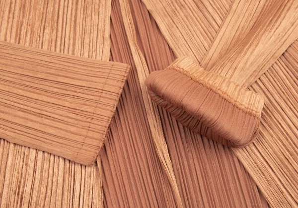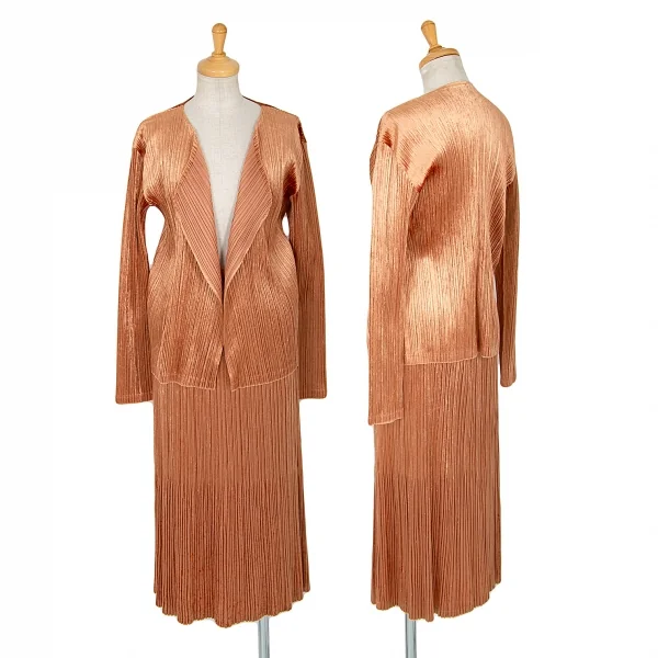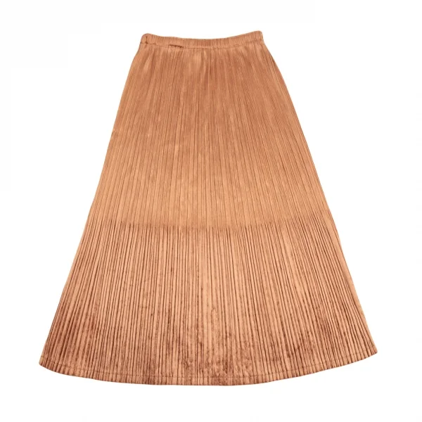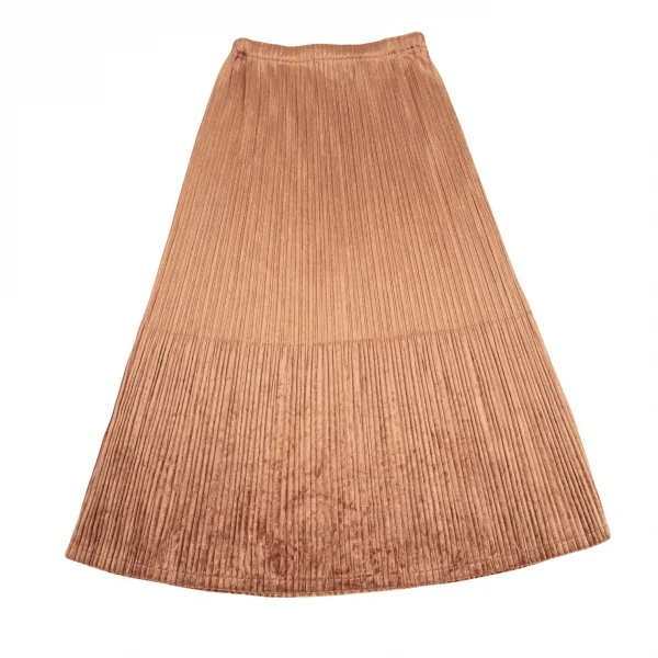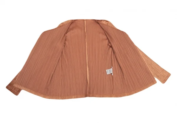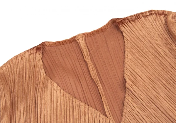 プリーツプリーズPLEATS PLEASE ベロアプリーツボタンレスセットアップ 茶3・1