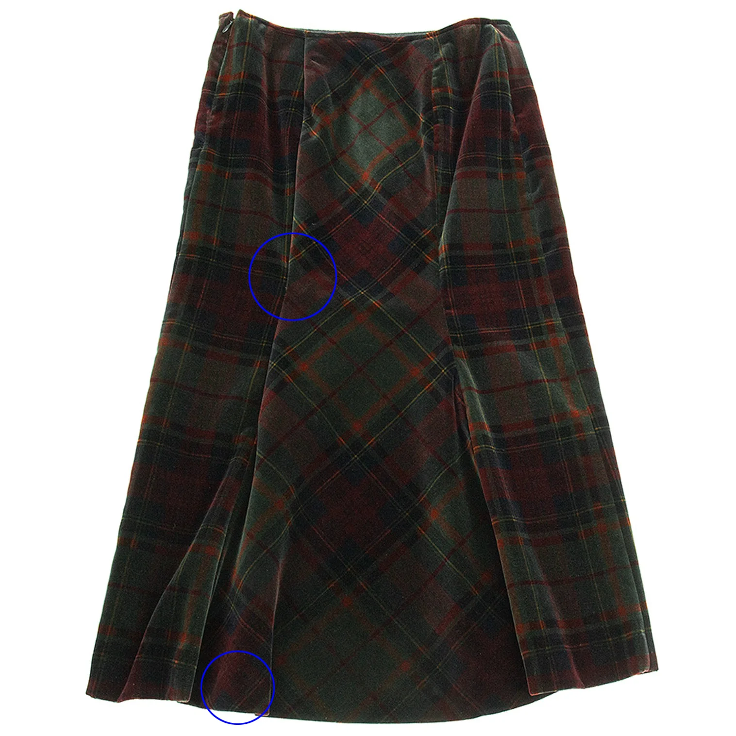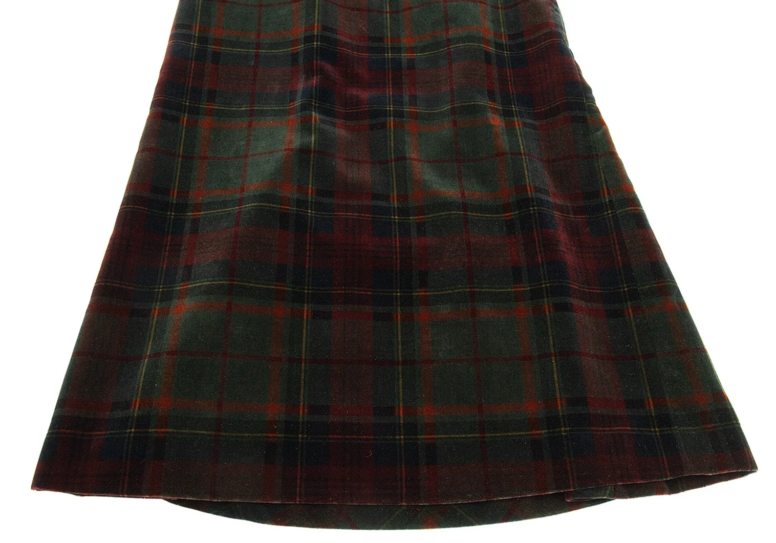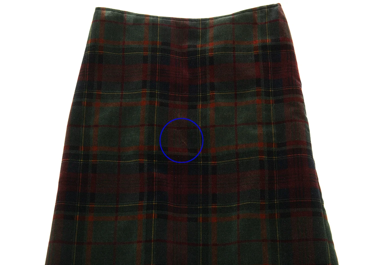 ラ ペリオード ヨシエ イナバLa Periode yoshie inabaベロアタータンチェックスカート 深緑他M位
