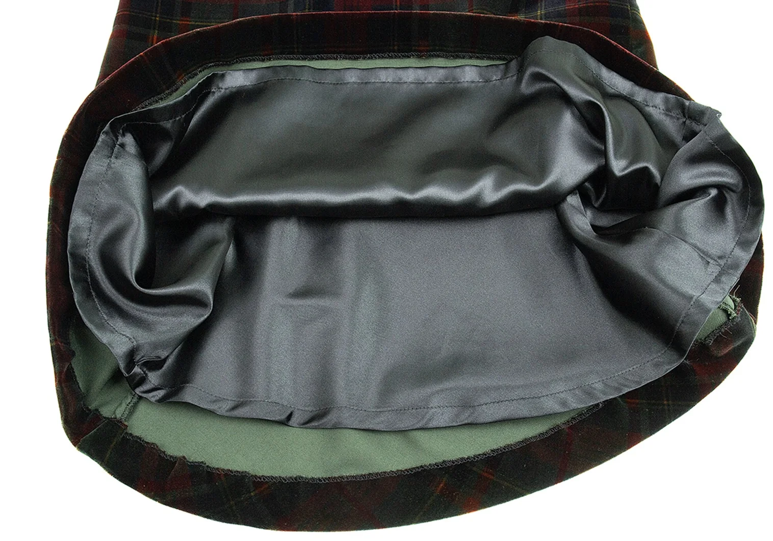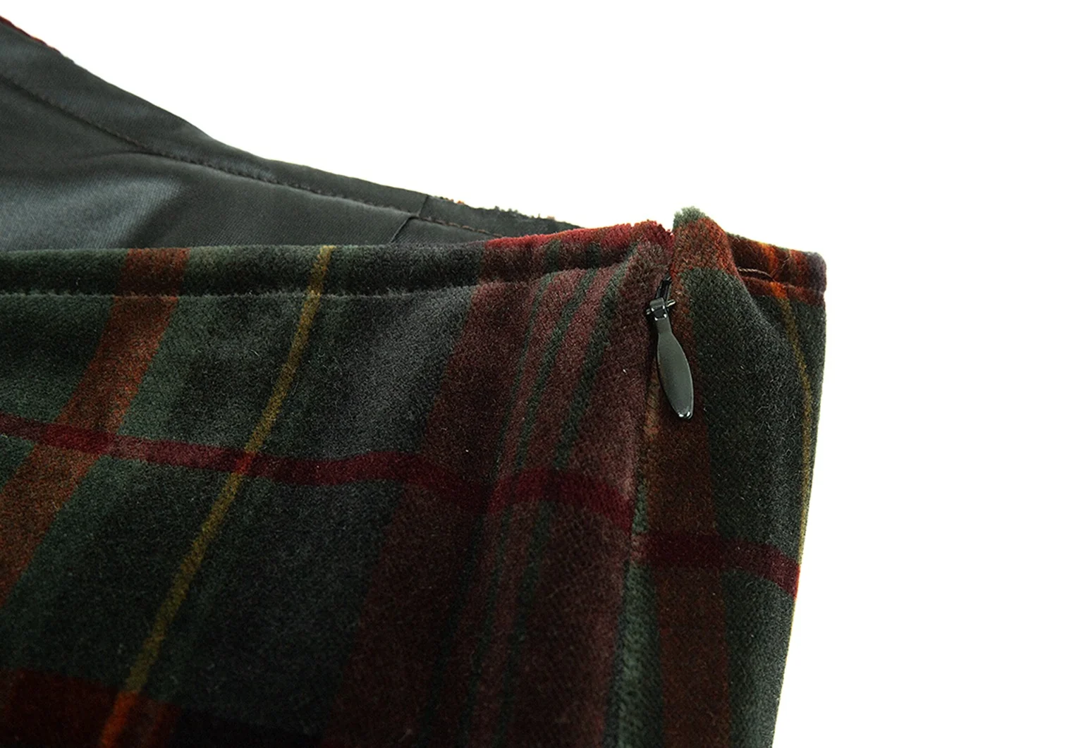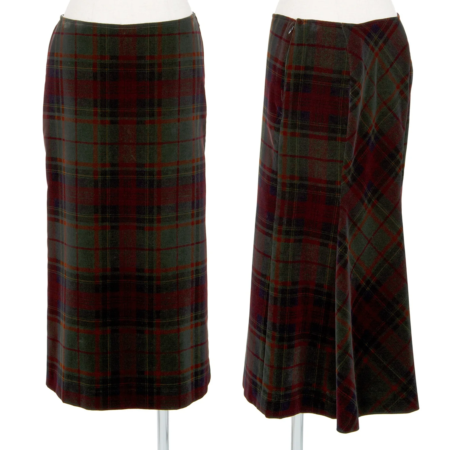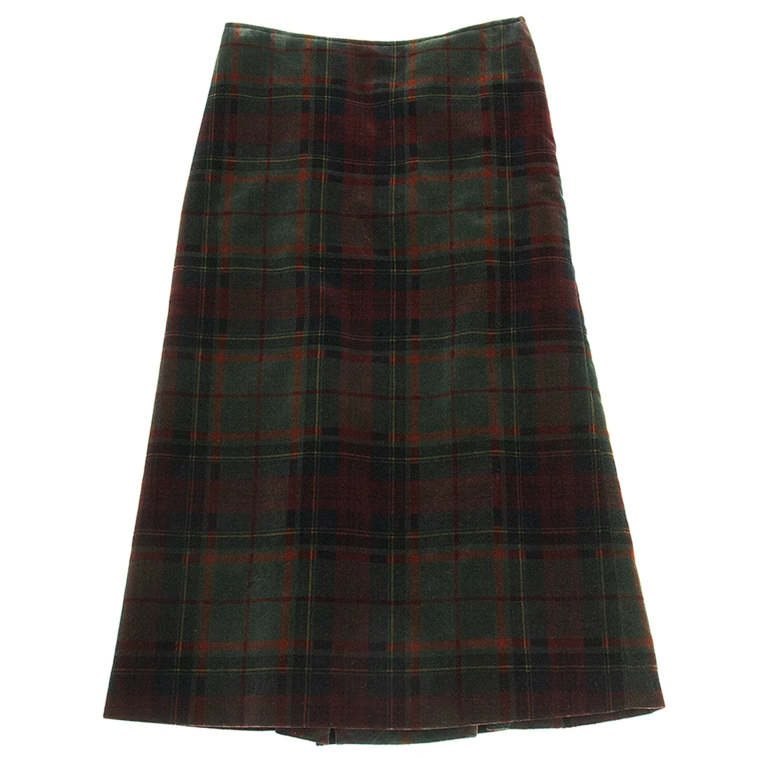 ラ ペリオード ヨシエ イナバLa Periode yoshie inabaベロアタータンチェックスカート 深緑他M位