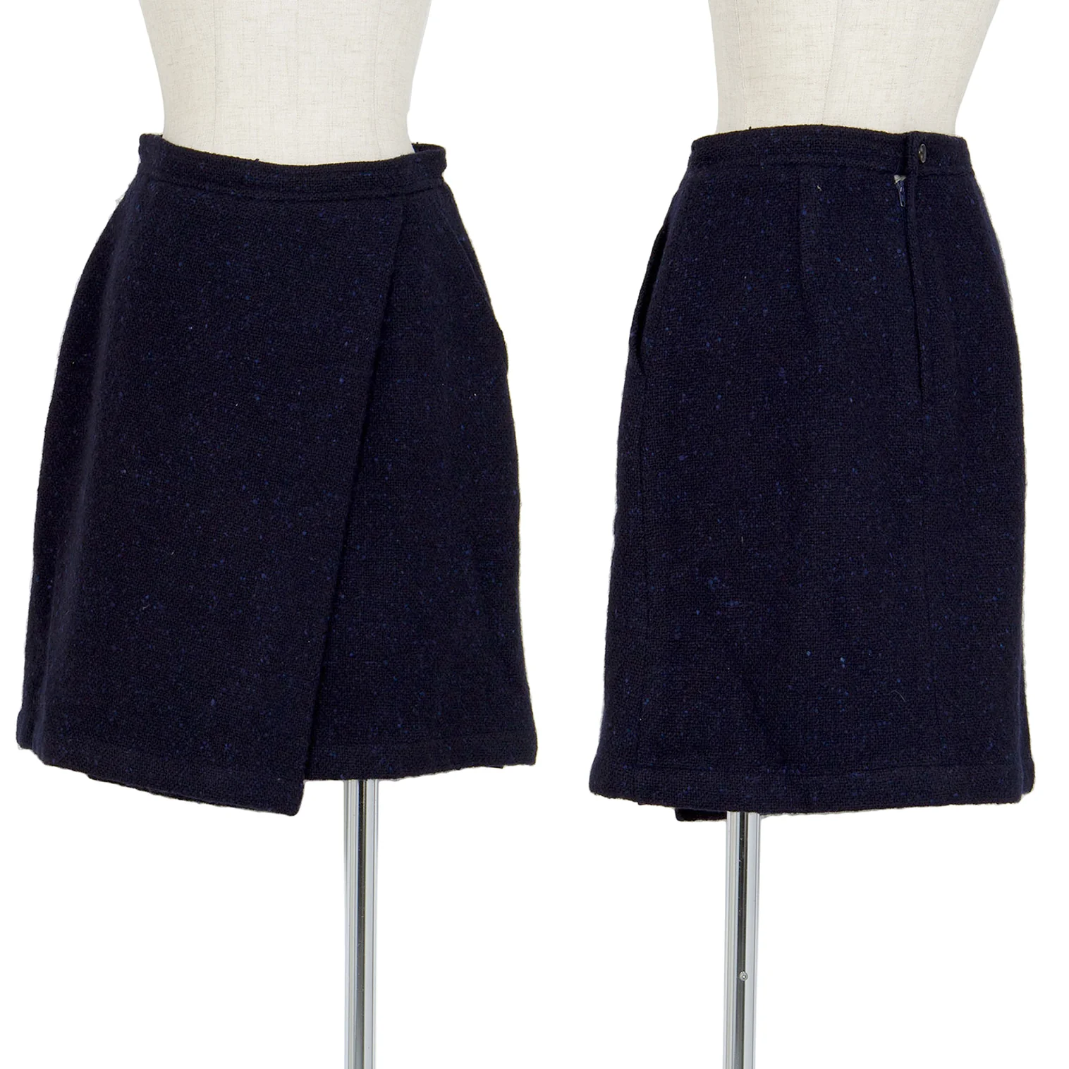 コムデギャルソン フランスCOMME des GARCONS FRANCE ネップツイードラップデザインスカート 紺S