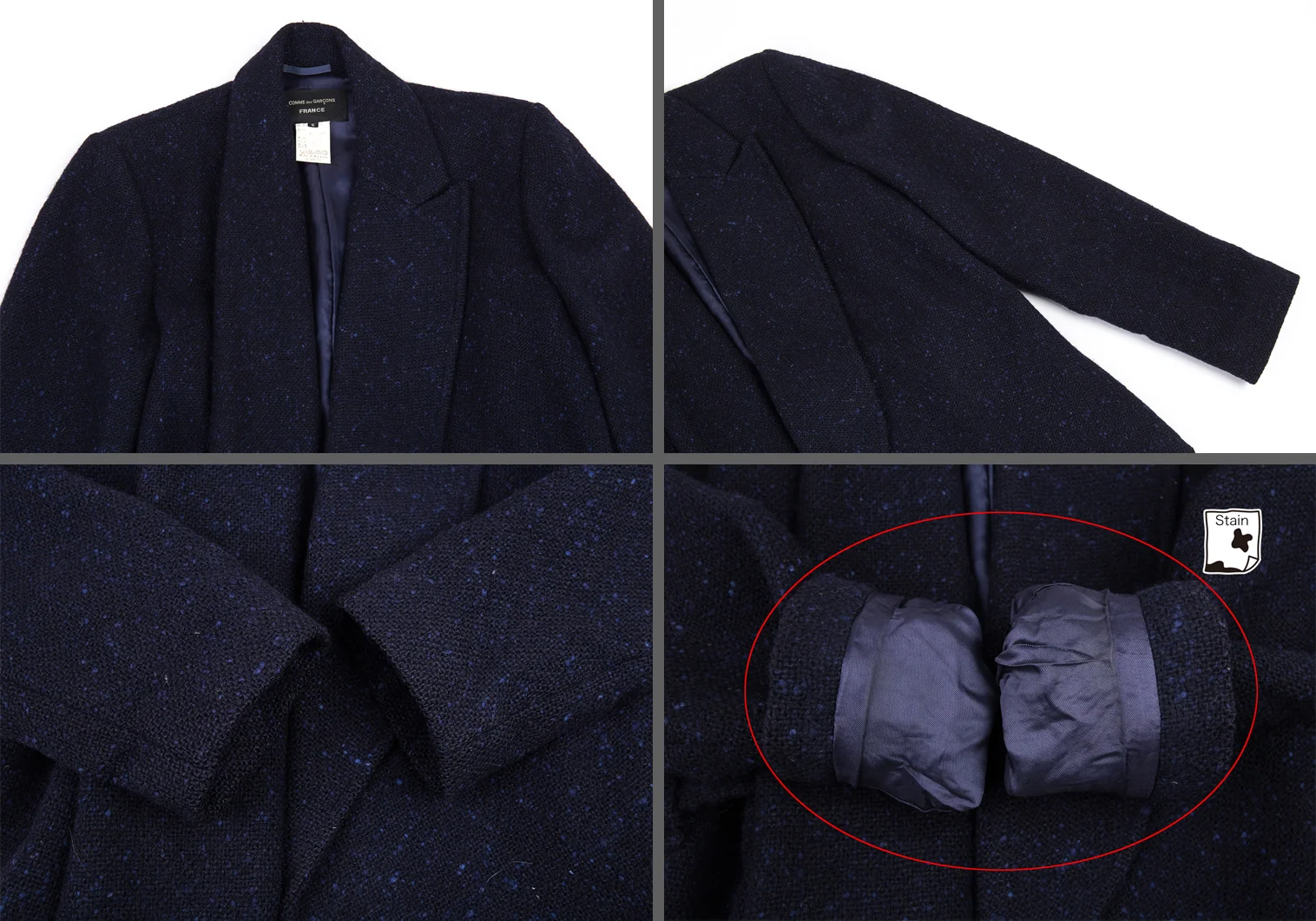 コムデギャルソン フランスCOMME des GARCONS FRANCE ネップツイードセットアップスーツ 紺S