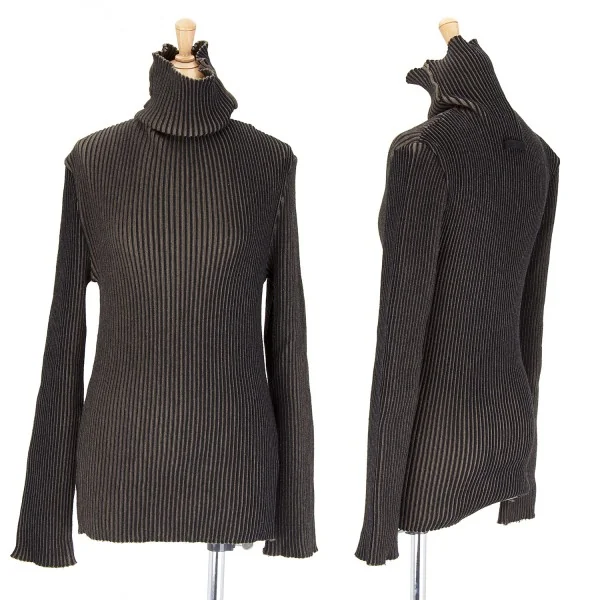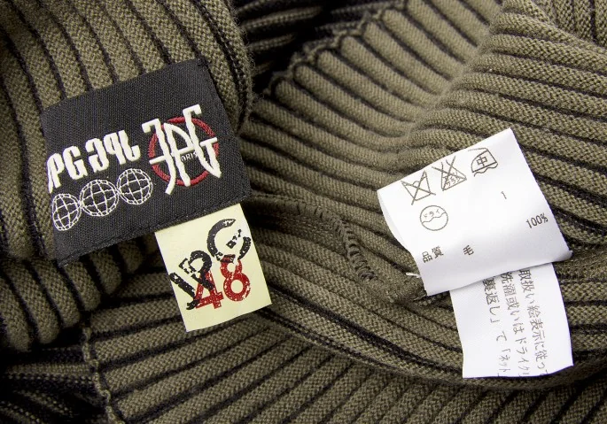 ゴルチェジーンズGAULTIER jeans タートルネックリブニットウールセーター 黒ゴールド48