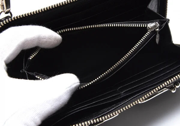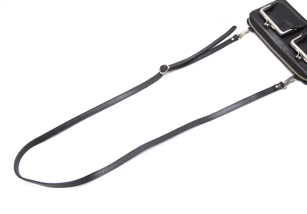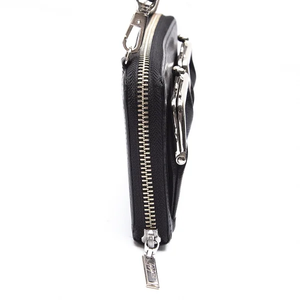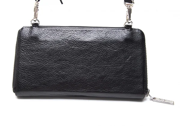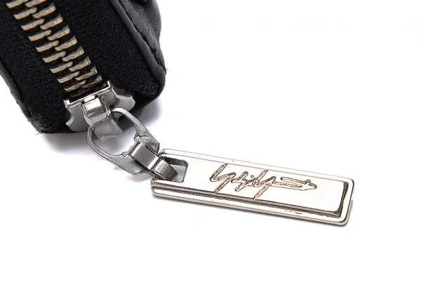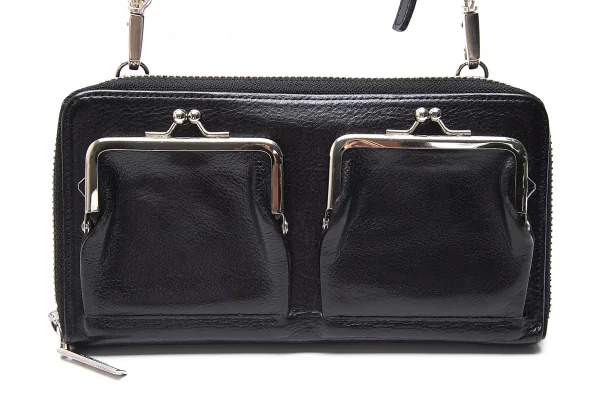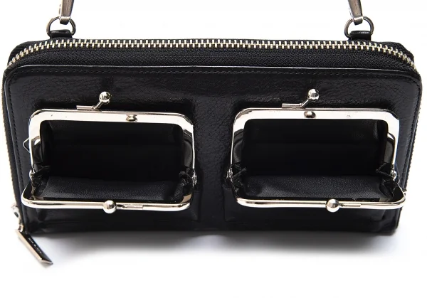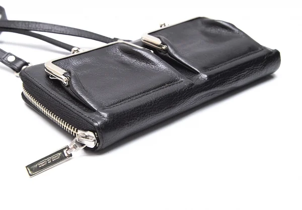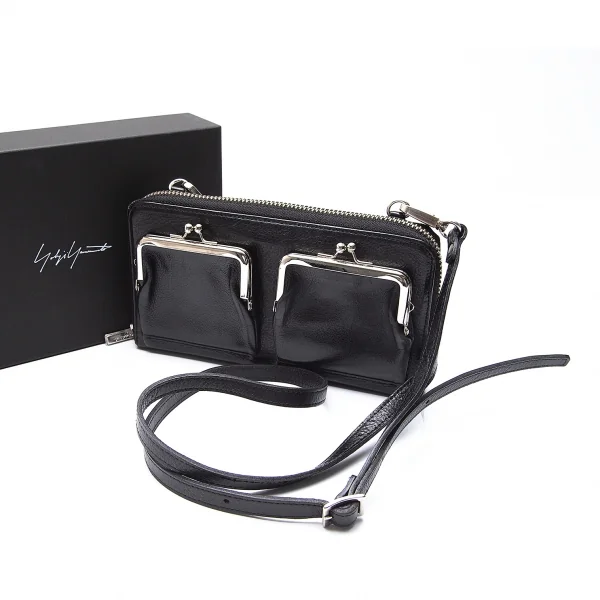 ヨウジヤマモト ノアールYohji Yamamoto NOIR レザーがま口ポケットラウンドジップショルダーウォレット 長財布 黒