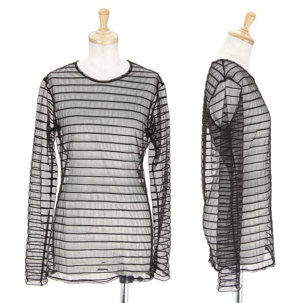 ヨウジヤマモト ファムyohji yamamoto FEE ナイロンシースルーボーダーブラウス 黒M