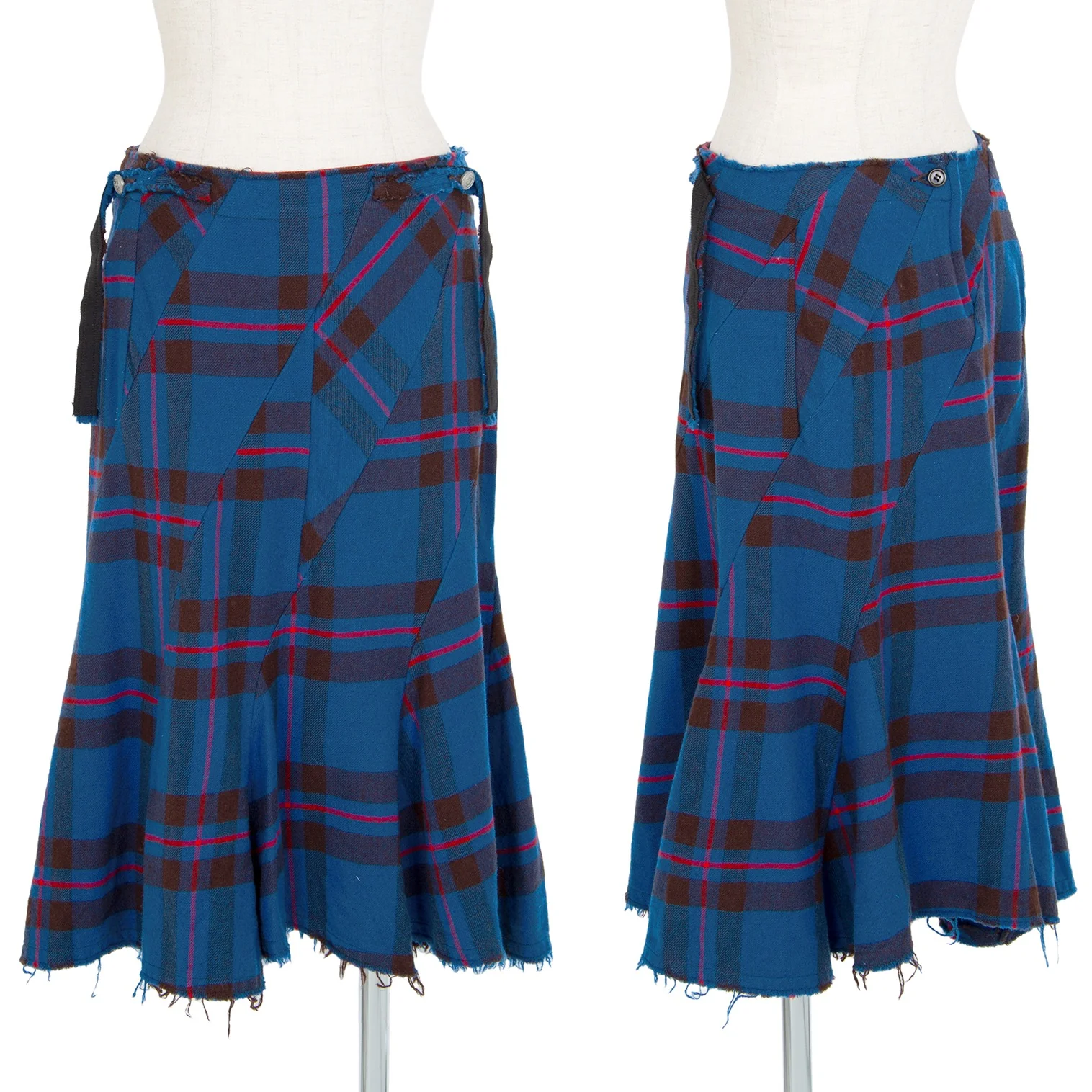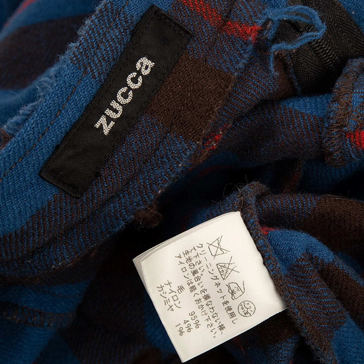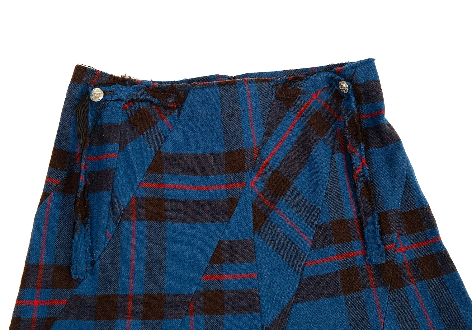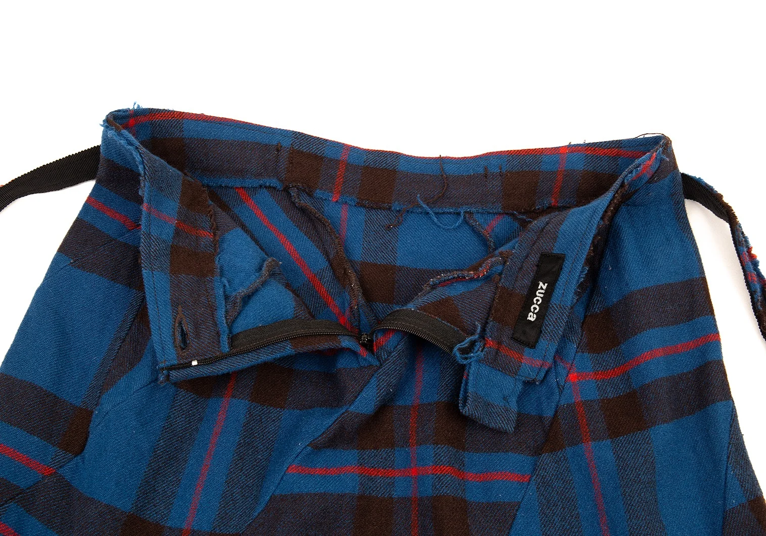 ズッカzucca フランネルチェックバイアスゴアードスカート 青S