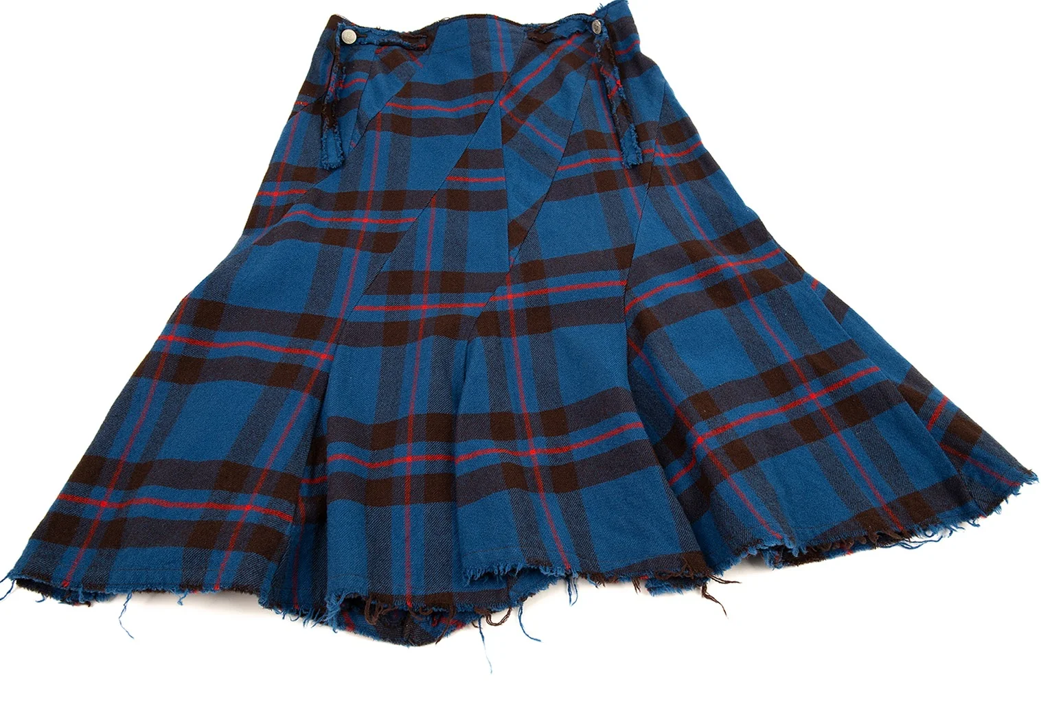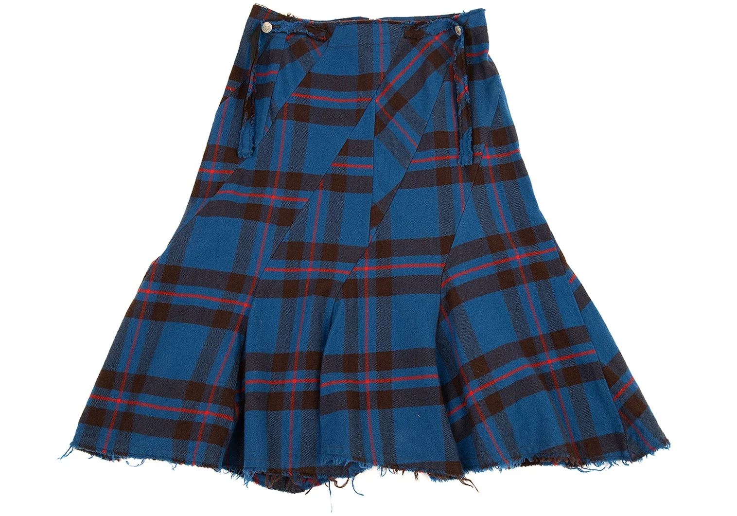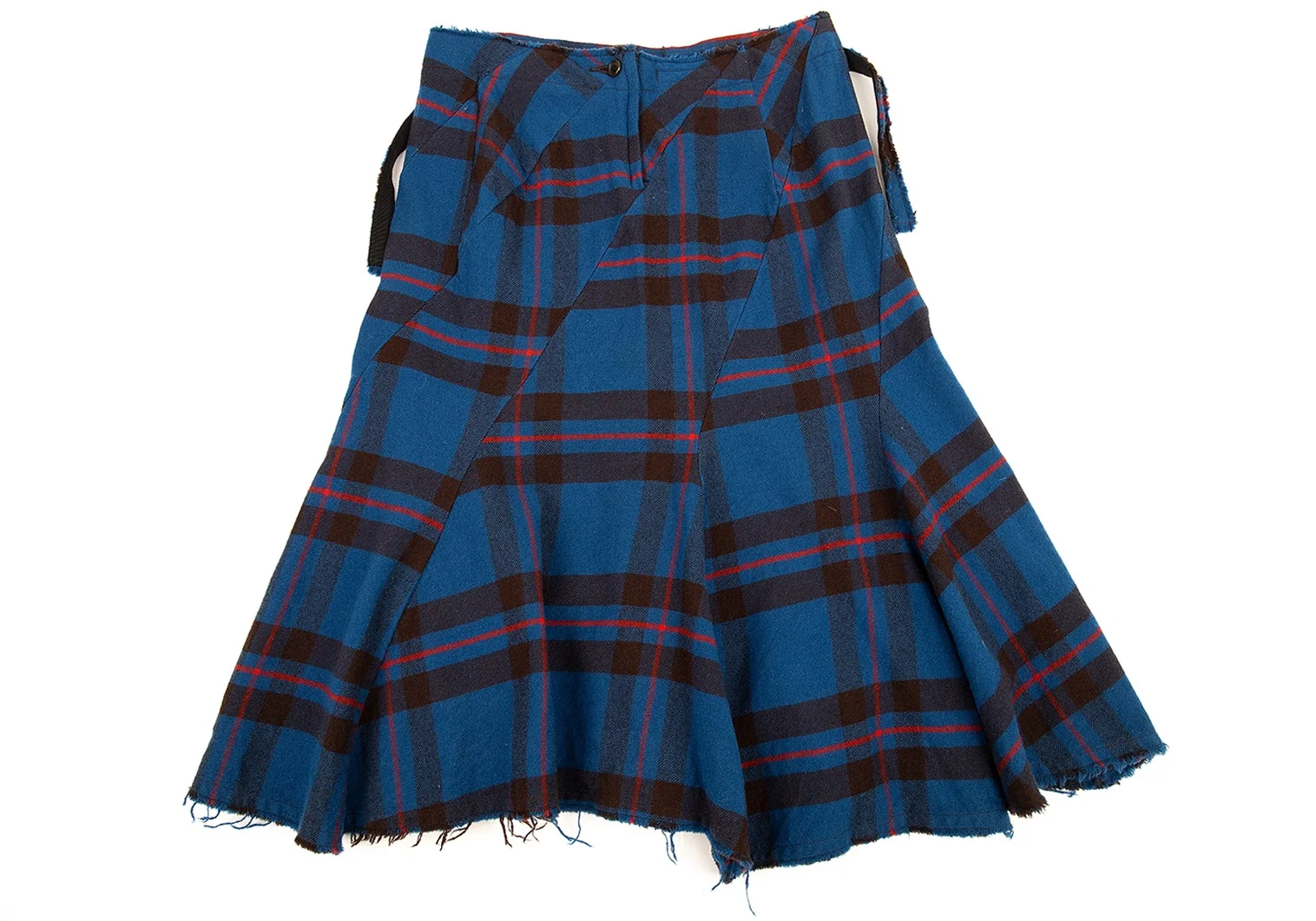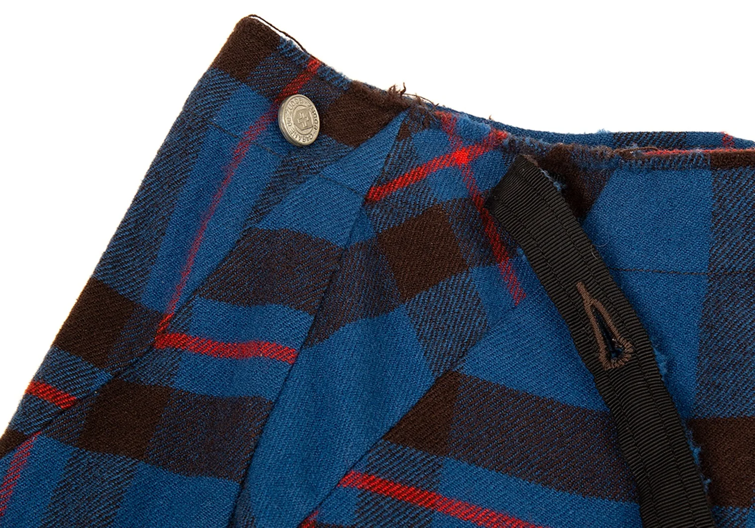 ズッカzucca フランネルチェックバイアスゴアードスカート 青S