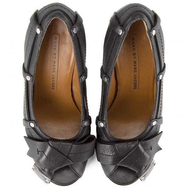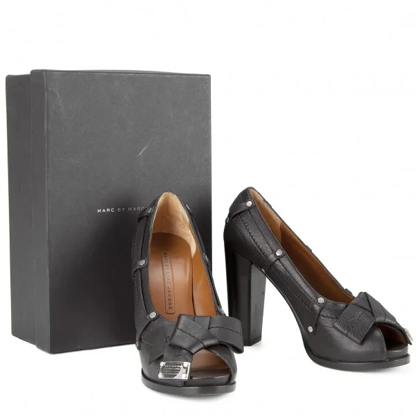 【SALE】マークバイマークジェイコブスMARC BY MARC JACOBS リボンデザインオープントゥパンプス 黒38.5