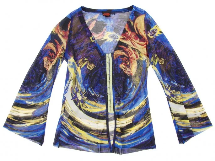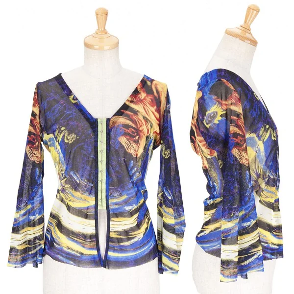 ジャンポールゴルチエ JeanPaulGaultier パワーネットホックVカーディガン 青40