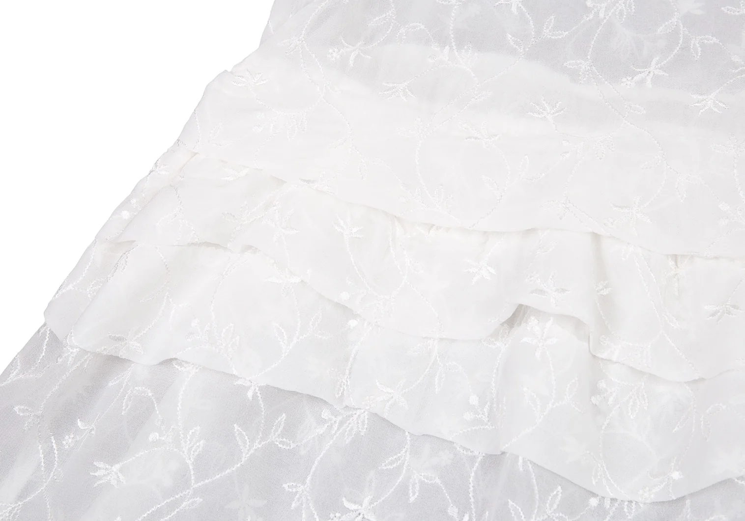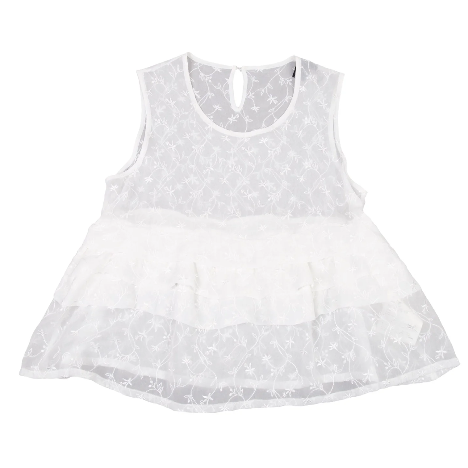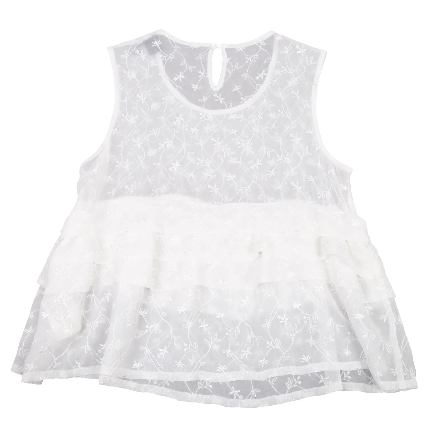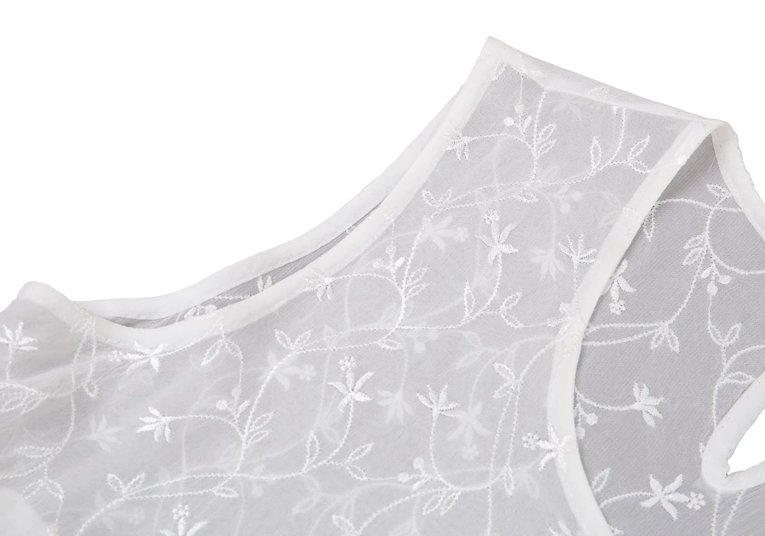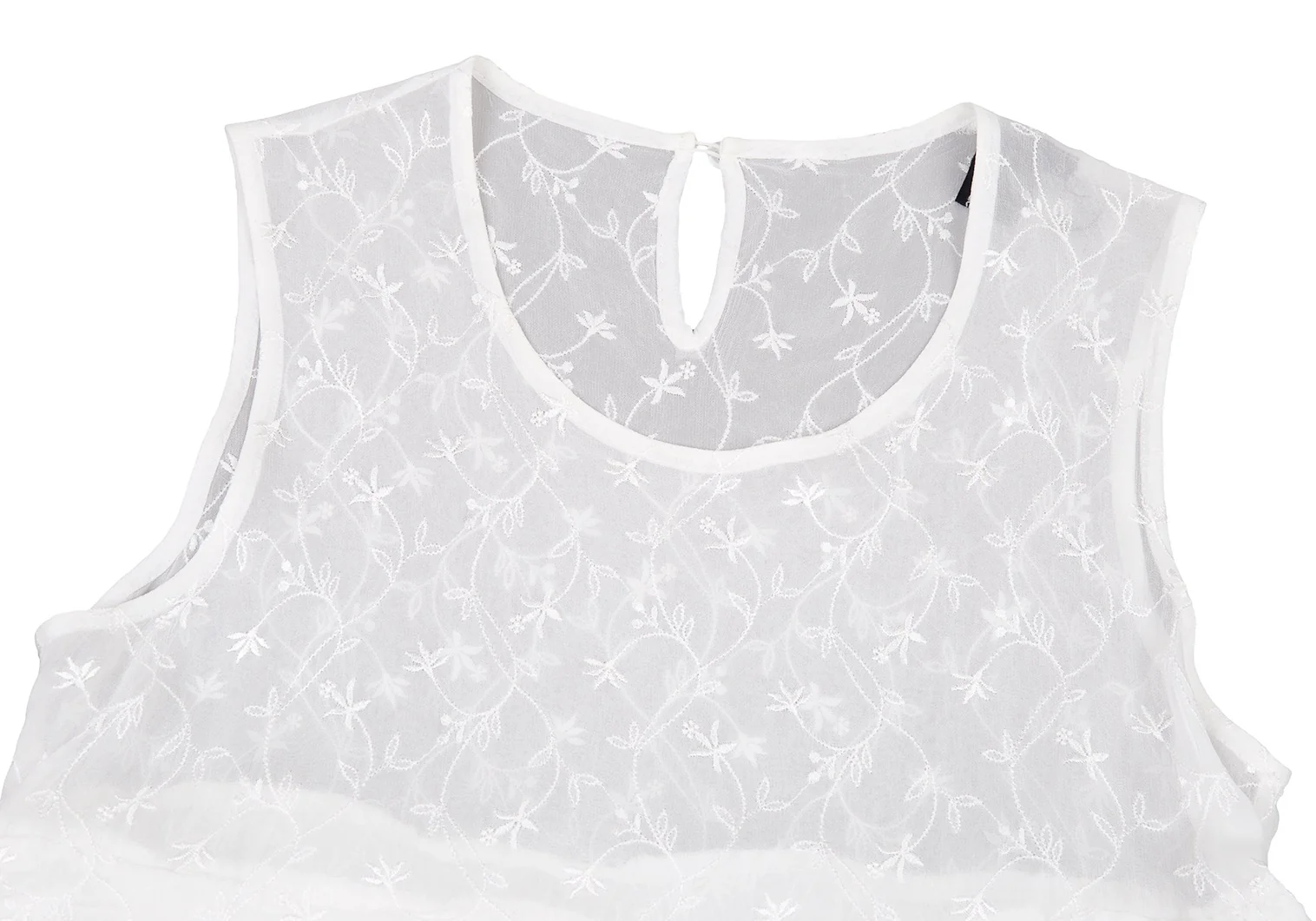 トリココムデギャルソンtricot COMME des GARCONS エンブロイダリーシフォンティアードノースリーブ 白S