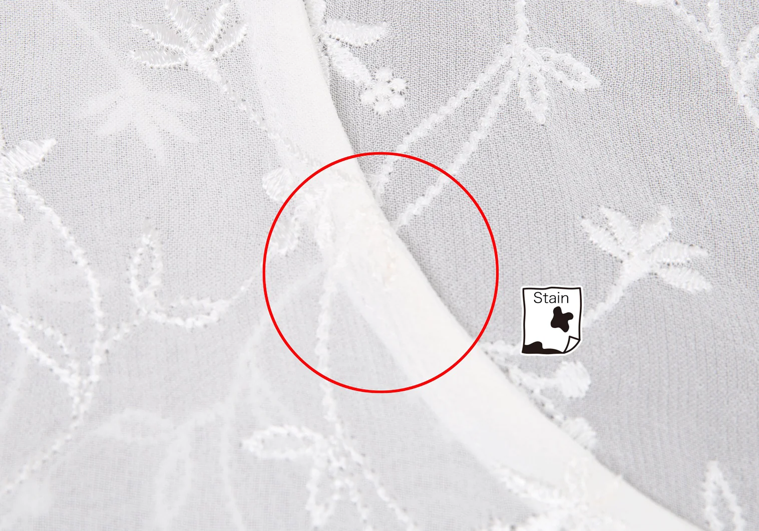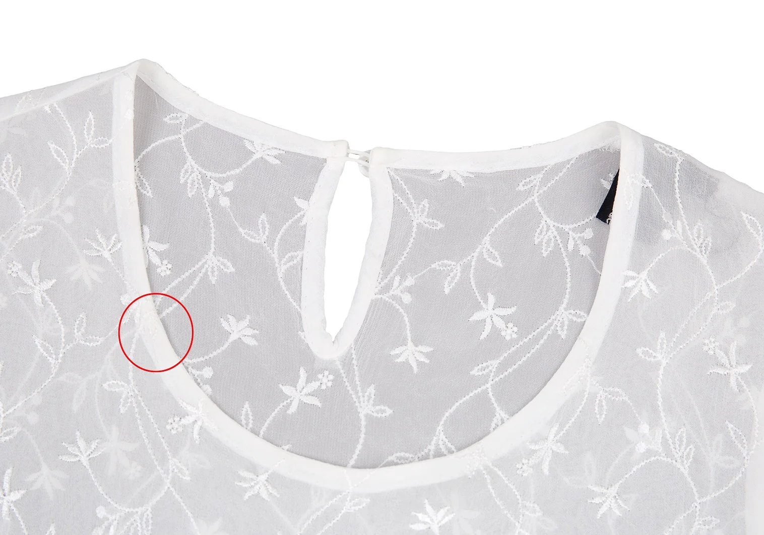 透け感のある生地です。首元に薄シミがあります(画像参照)。その他目立ったシミ、汚れ、ほつれ等なくいい状態です。クリーニング済み