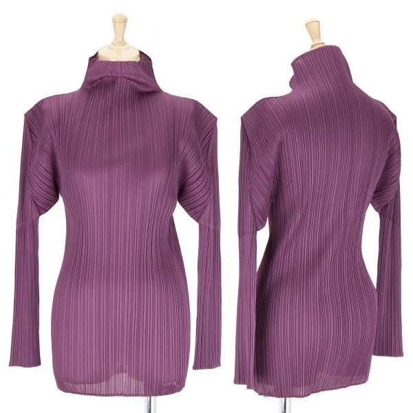 プリーツプリーズPLEATS PLEASE ハイネックプリーツカットソー パープル3