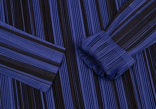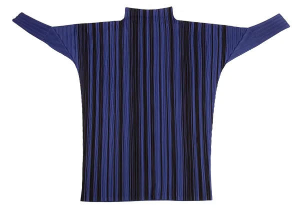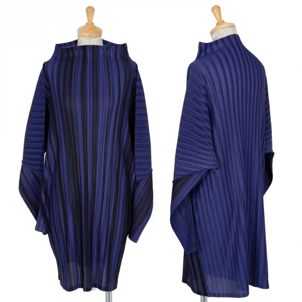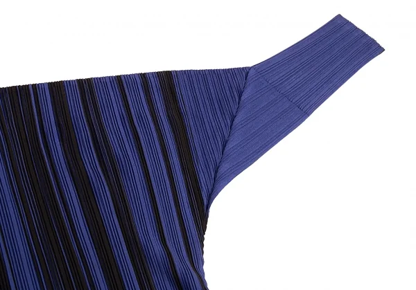 プリーツプリーズPLEATS PLEASE ストライププリントドルマンチュニック 青黒4位