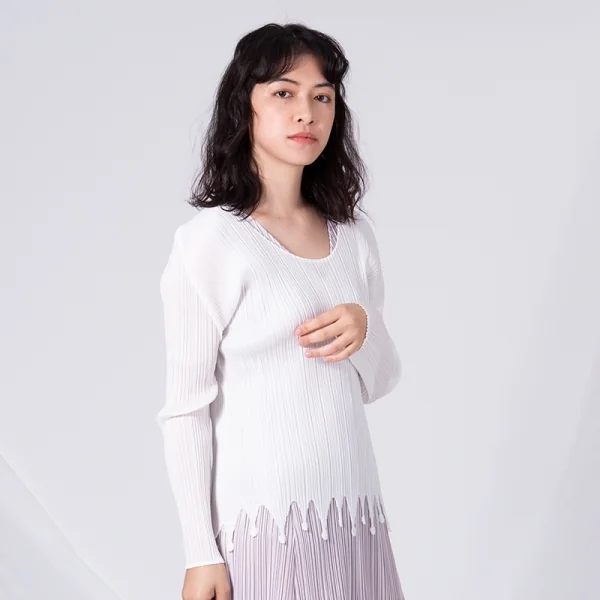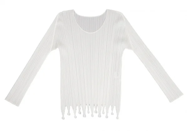 プリーツプリーズPLEATS PLEASE 裾フリンジカットソー 白3