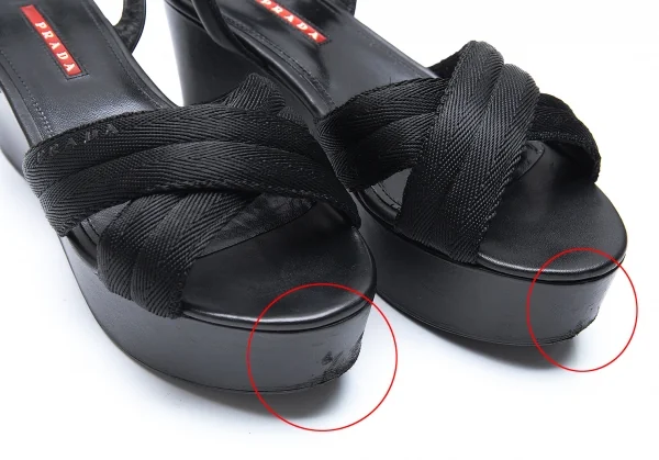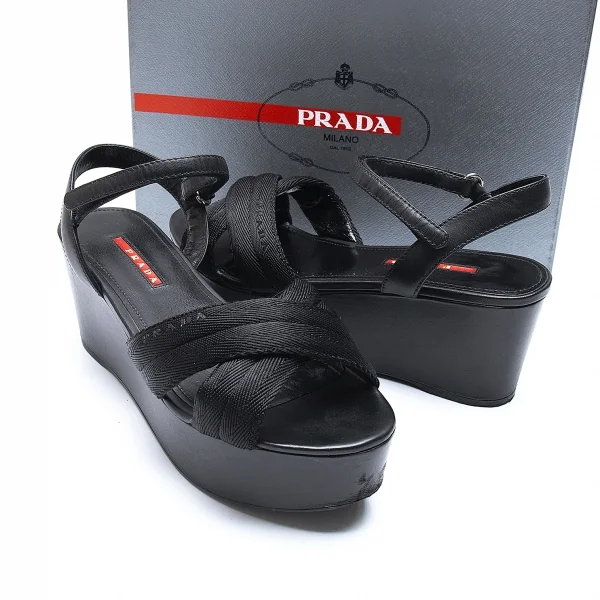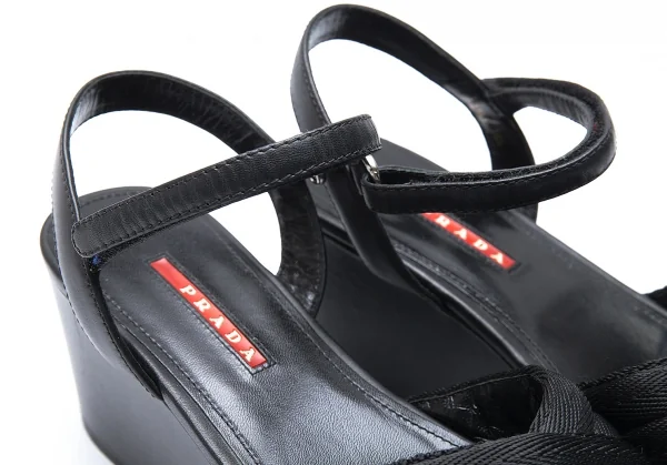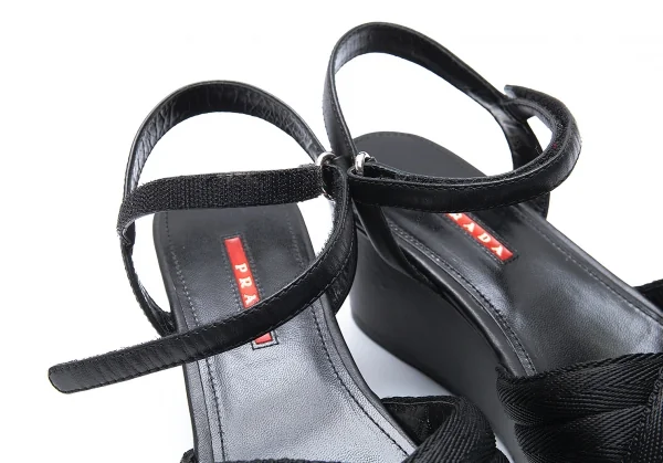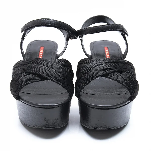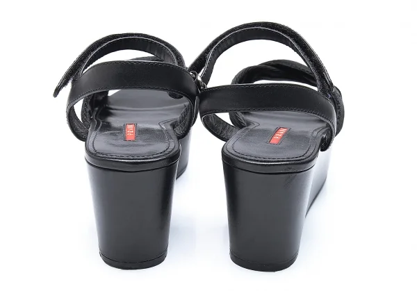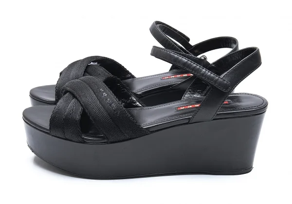 プラダスポーツPRADA SPORT ナイロンレザープラットフォームサンダル 黒38.5(24位)