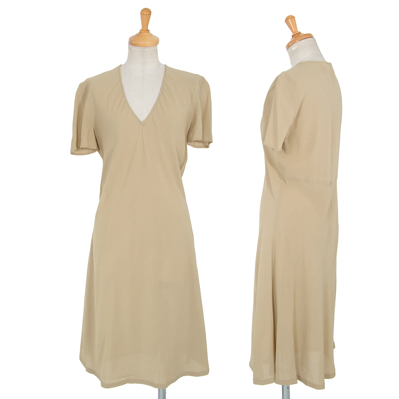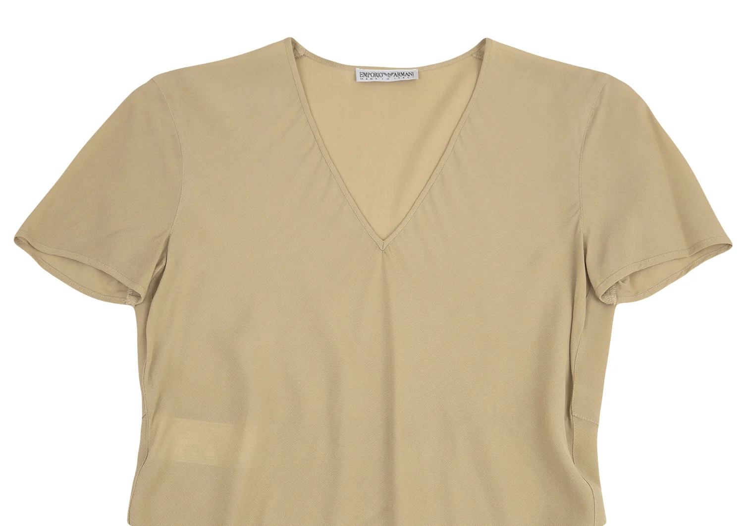 エンポリオアルマーニEMPORIO ARMANI シースルーVネック半袖ワンピース モカ40