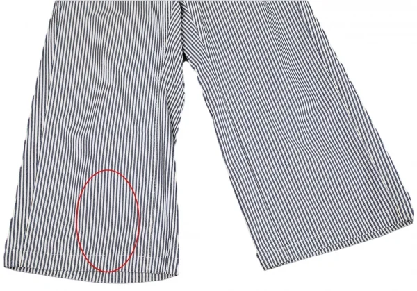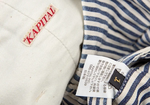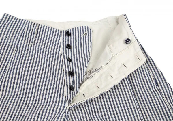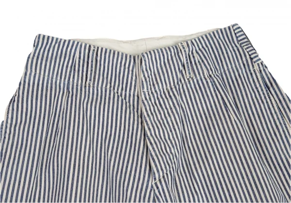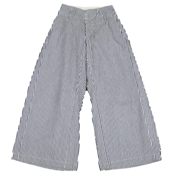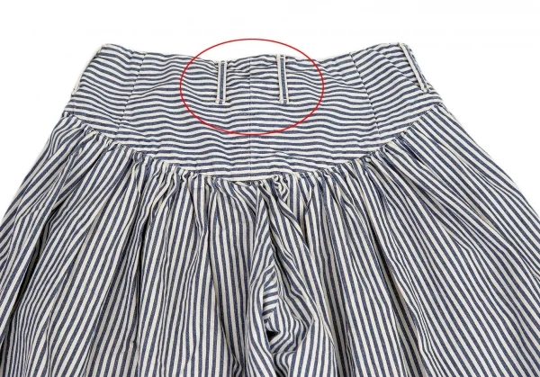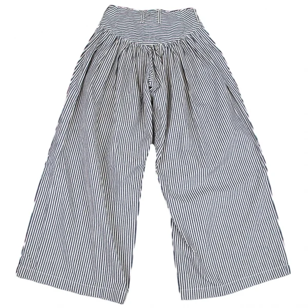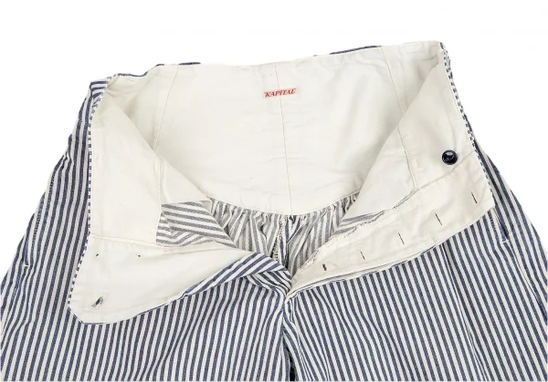 キャピタルKAPITAL ヒッコリーストライプバックギャザーワイドパンツ オフ紺1