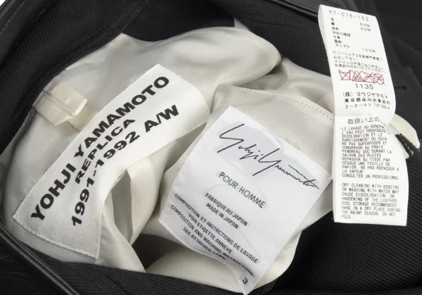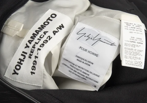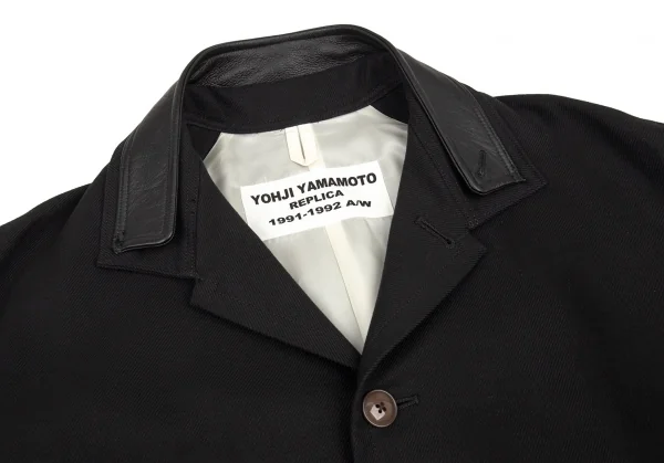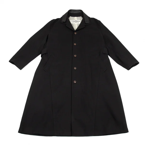 ヨウジヤマモト プールオムYohji Yamamoto POUR HOMME REPLICA 1991-1992A/Wレプリカ バイアスレザー襟ロングコート 黒3