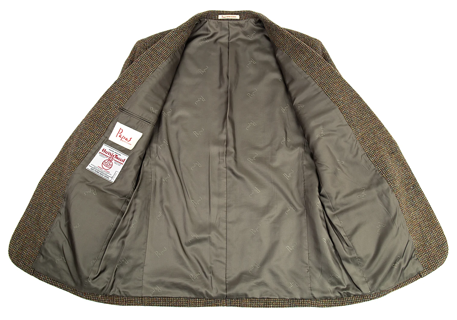 パパスPapas ハリスツイードくるみボタンテーラードジャケット 茶M
