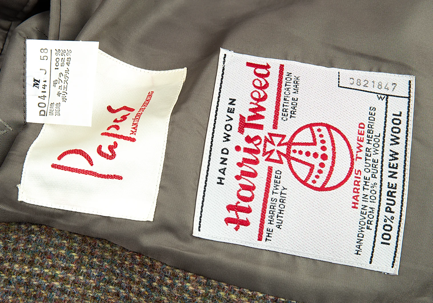 毛100% 裏地 キュプラ52% ポリエステル48%