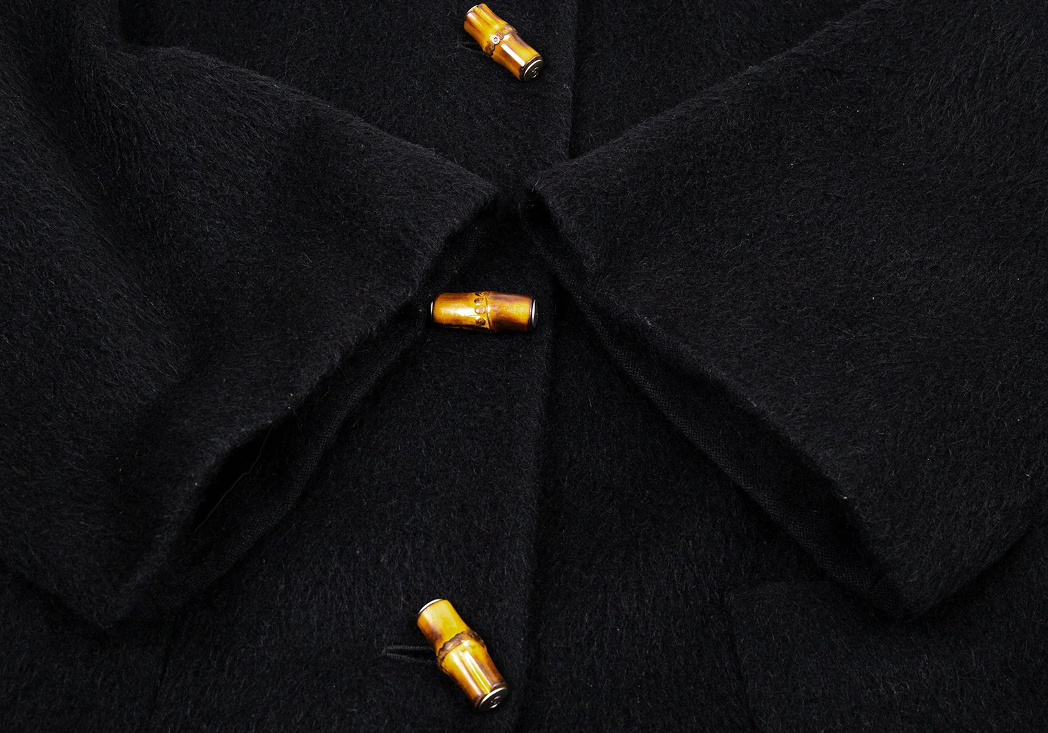 グッチGUCCI バンブートグルフーデッドシャギーコート 黒38
