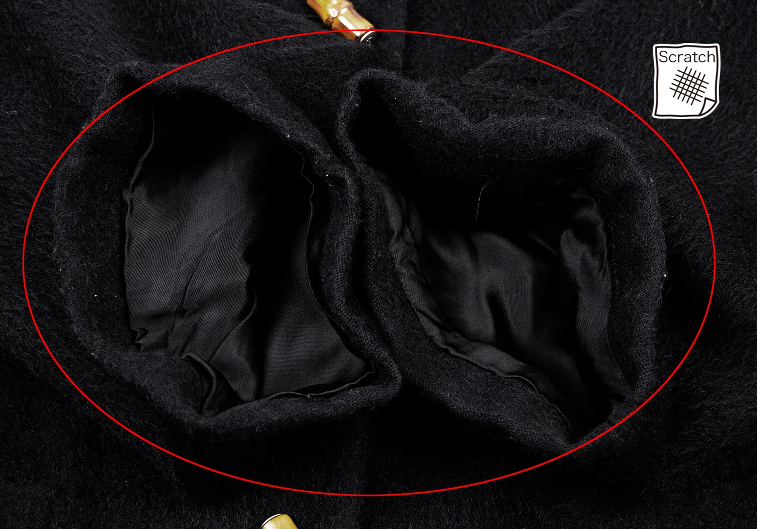 袖先に毛抜け、裏ポケットに引っ掛けがあります(写真参照)。その他に目立ったシミ、汚れ、ほつれ等なくいい状態です。クリーニング済み