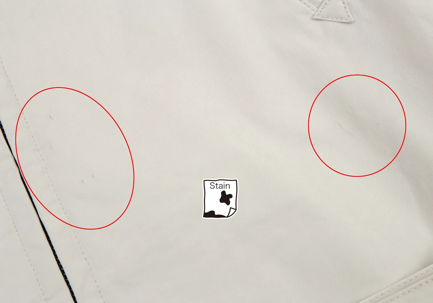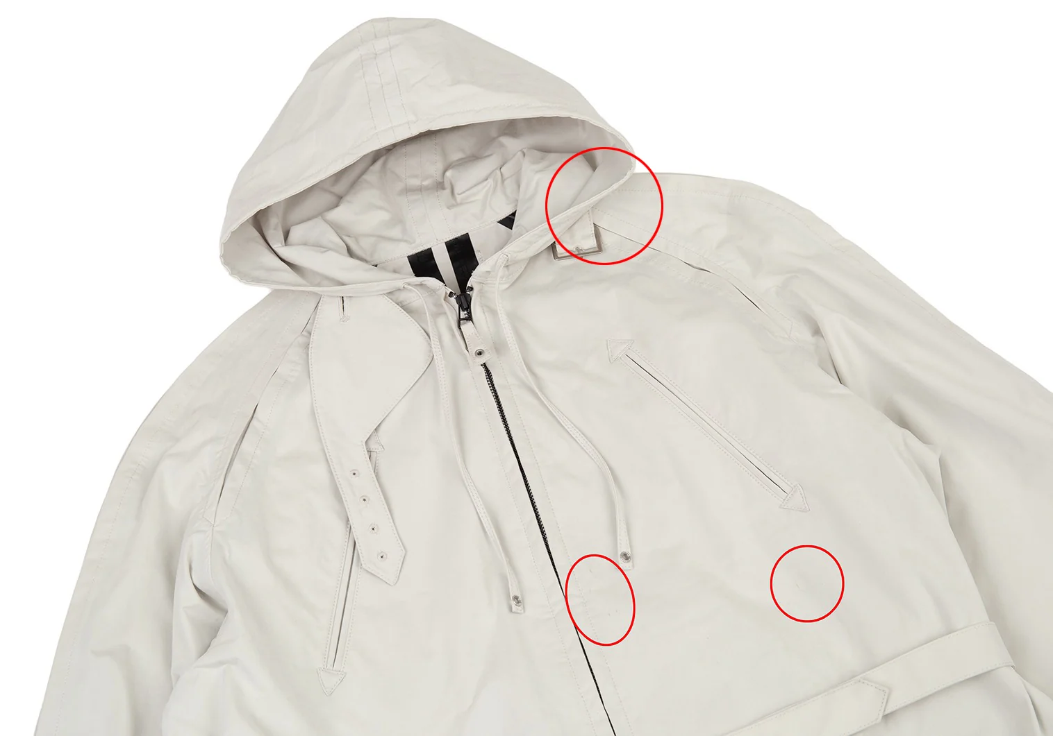 フード、前身頃・裾・袖先・袖裏に薄汚れがあります(画像参照)。その他目立ったシミ、汚れ、ほつれ等なくいい状態です。クリーニング済み