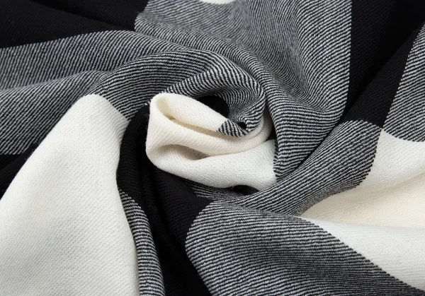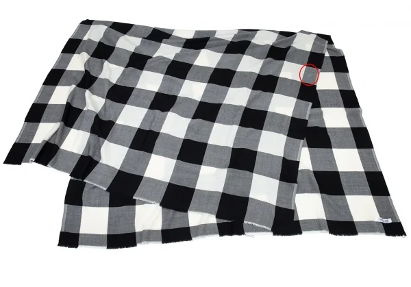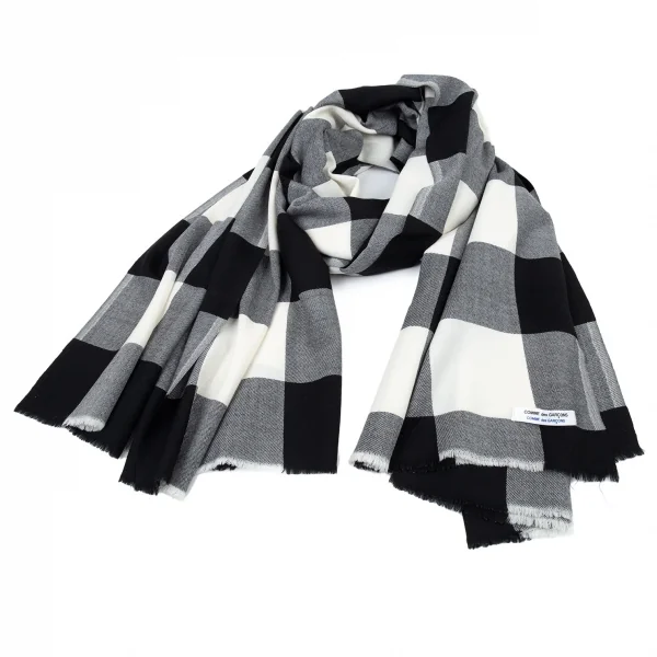 コムコム コムデギャルソンCOMME des GARCONS ブロックチェック大判ストール 黒グレーオフ