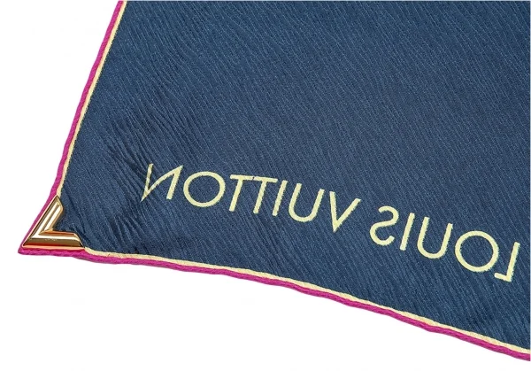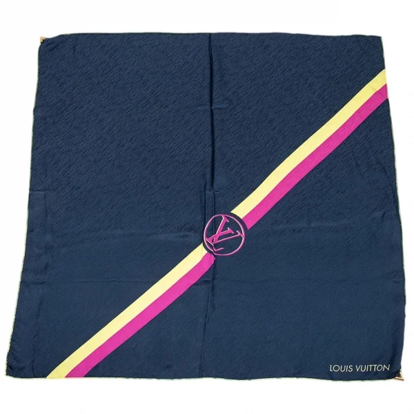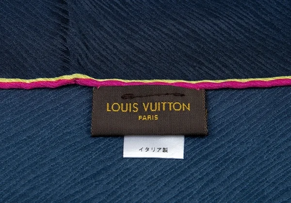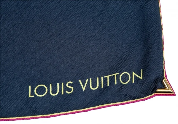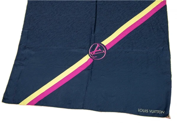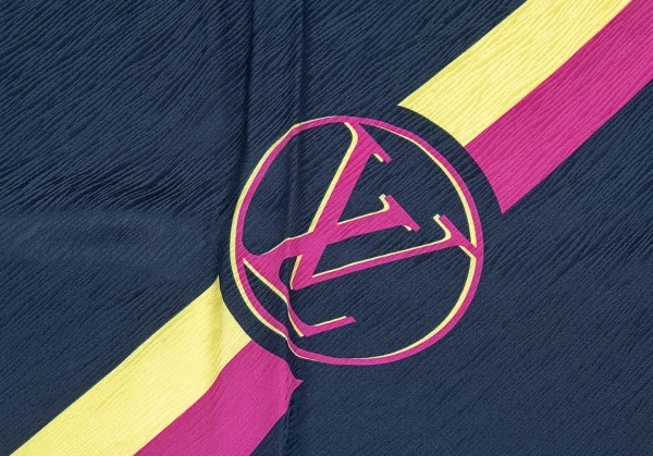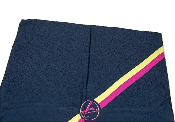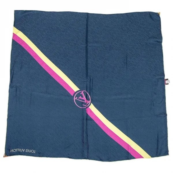 ルイヴィトンLouis Vuitton メタルチップ付きロゴプリントスカーフ 紺