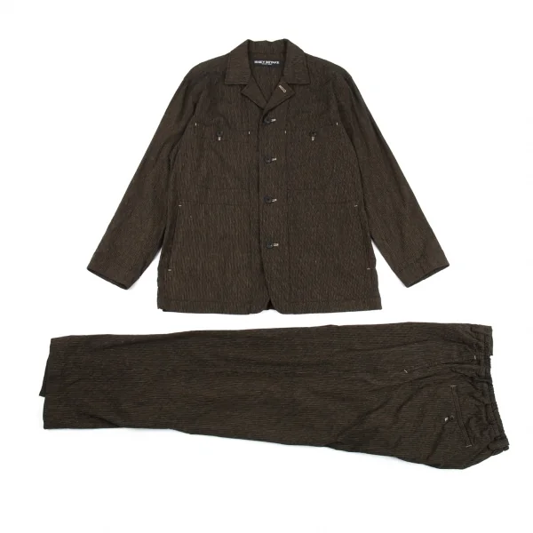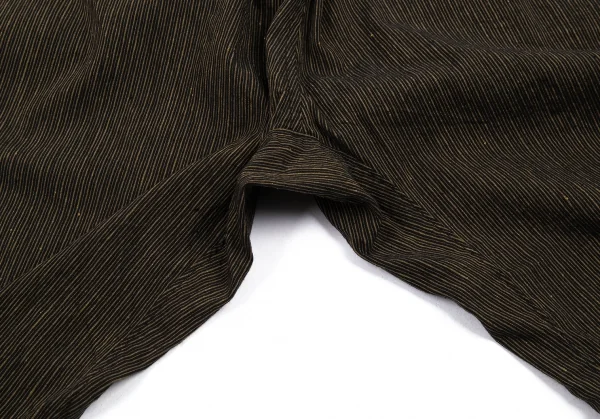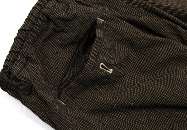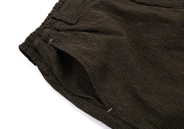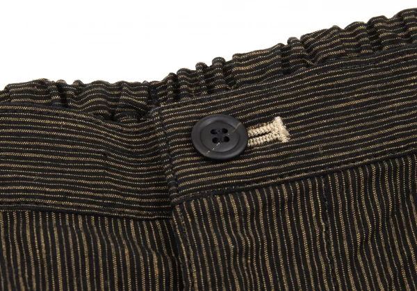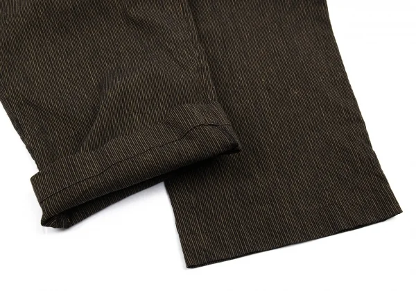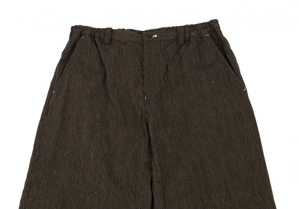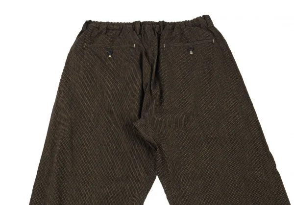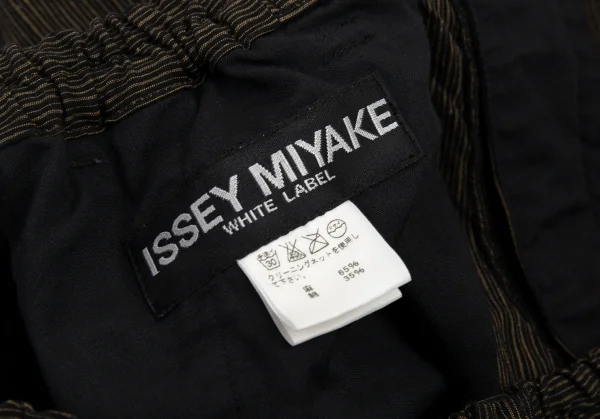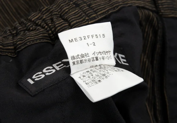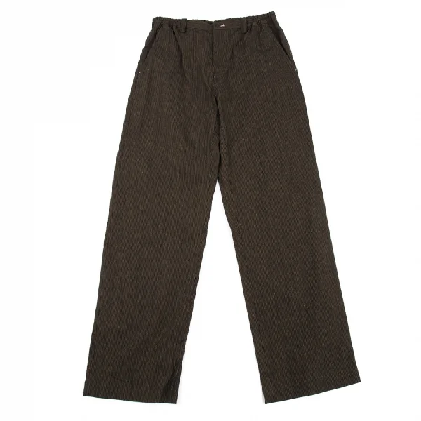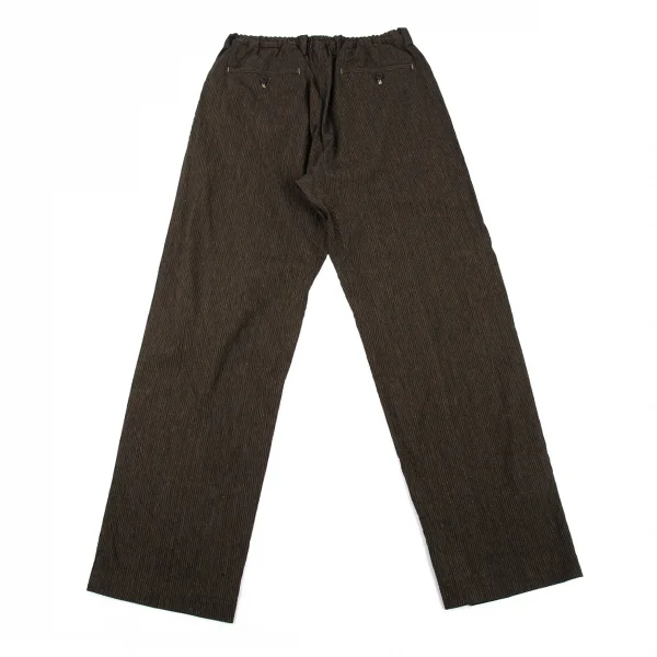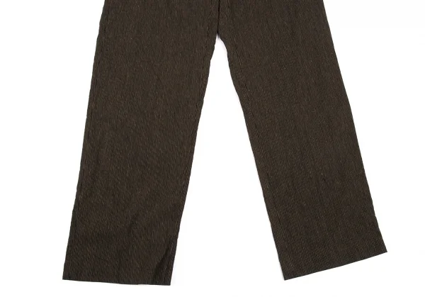 イッセイミヤケ メン ホワイトレーベルISSEY MIYAKE MEN WHITE LABEL ゴムウエストリネンコットンストライプパンツ 茶1-2