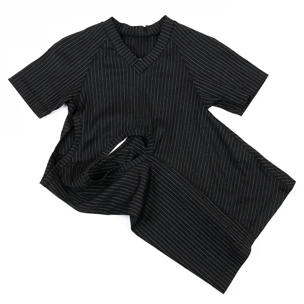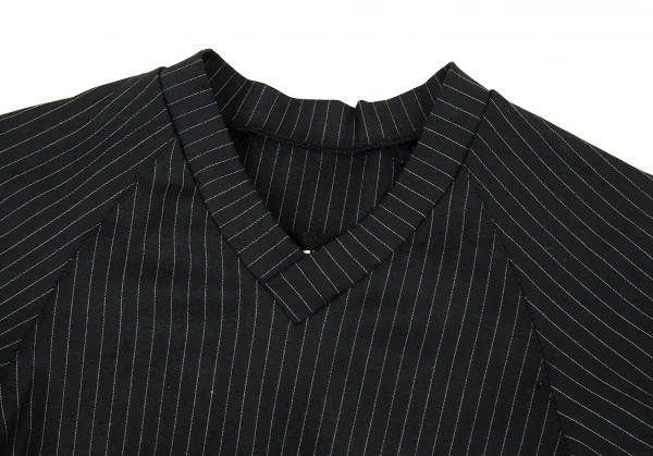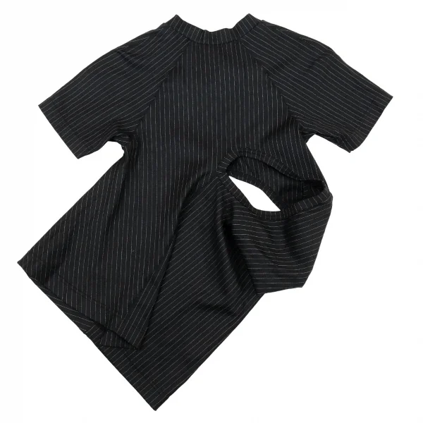 ジュンヤワタナベ コムデギャルソンJUNYA WATANABE COMME des GARCONS ウールストレッチストライプホール変形デザインVネックTシャツ 黒S位