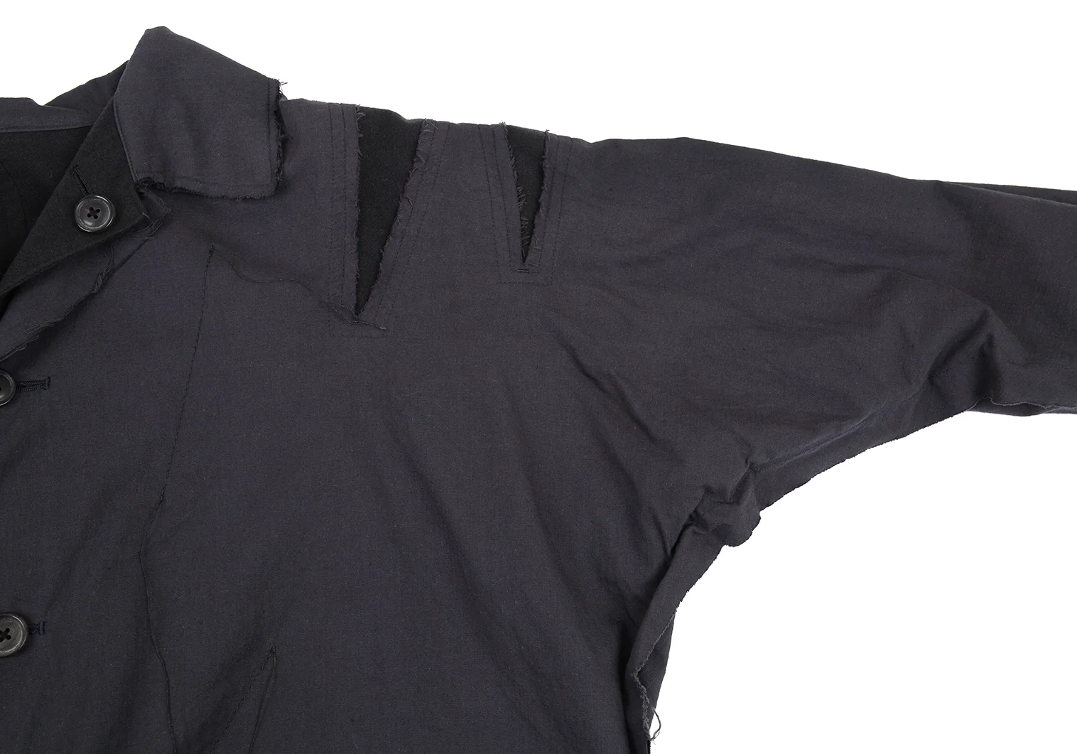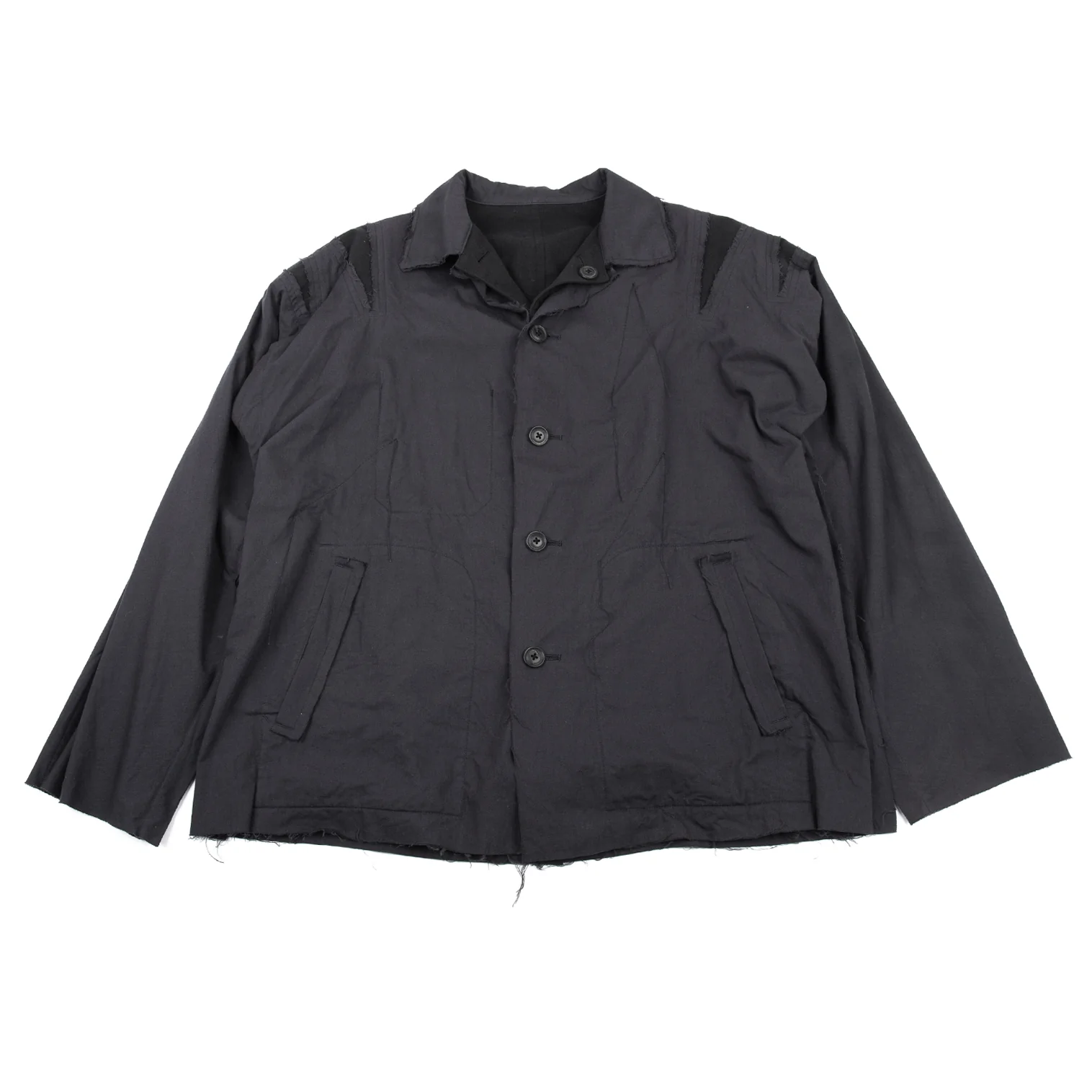 ヨウジヤマモト プールオムYohji Yamamoto POUR HOMME 異素材裁ち切りリバーシブルレイヤードジャケット グレー黒2