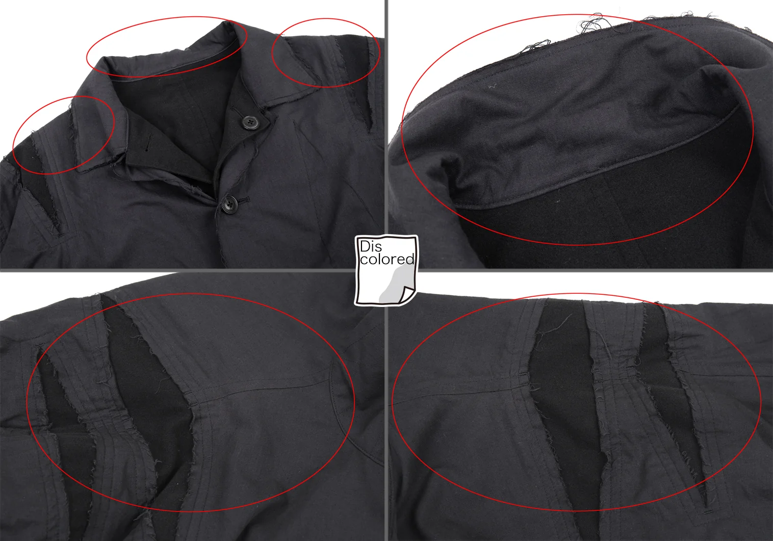 2015A/W コレクション着用アイテムです。襟裏・肩に変色、左袖に若干の変色があります(写真参照)。その他に目立ったシミ、汚れ、ほつれ等はありません。クリーニング済み