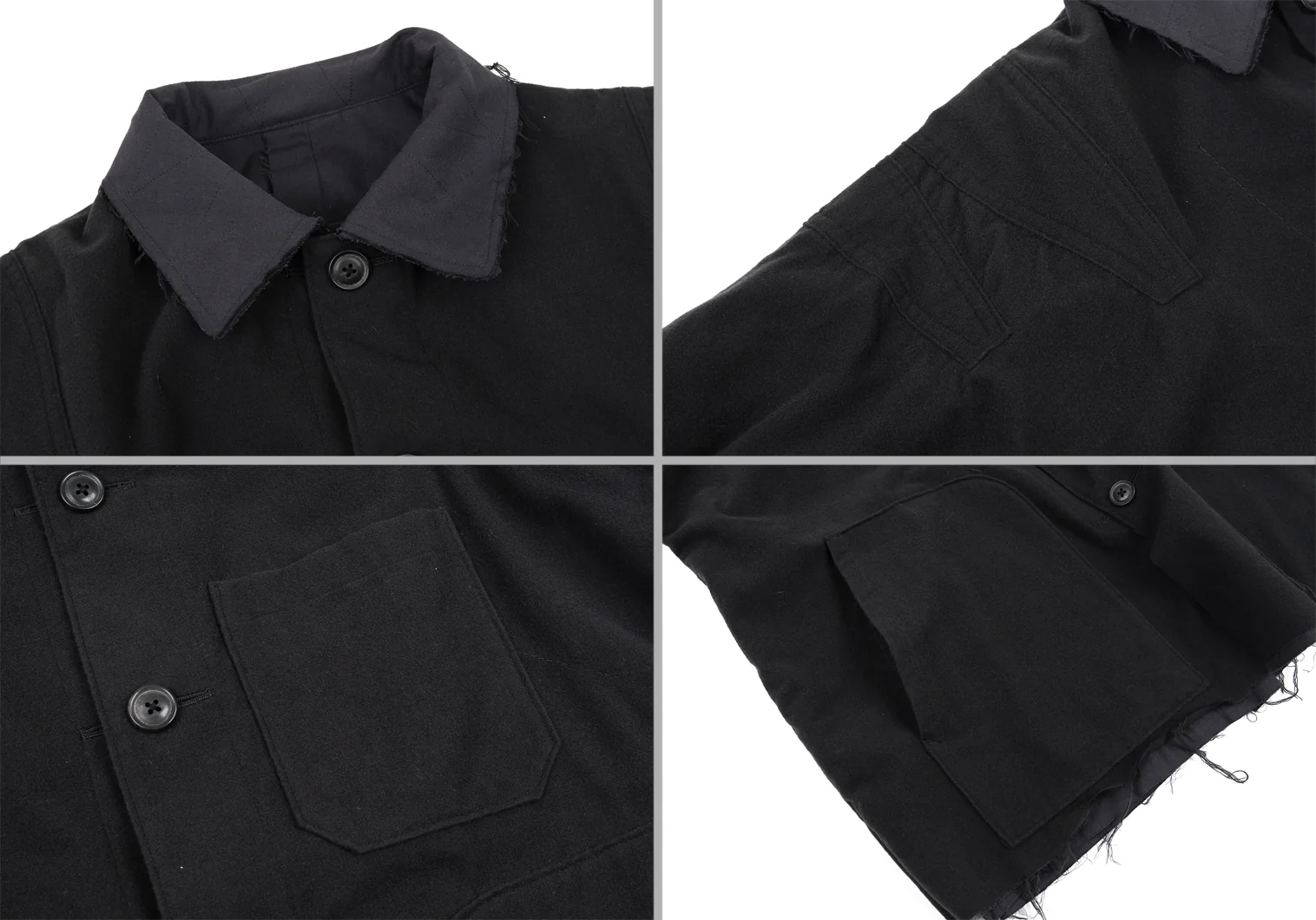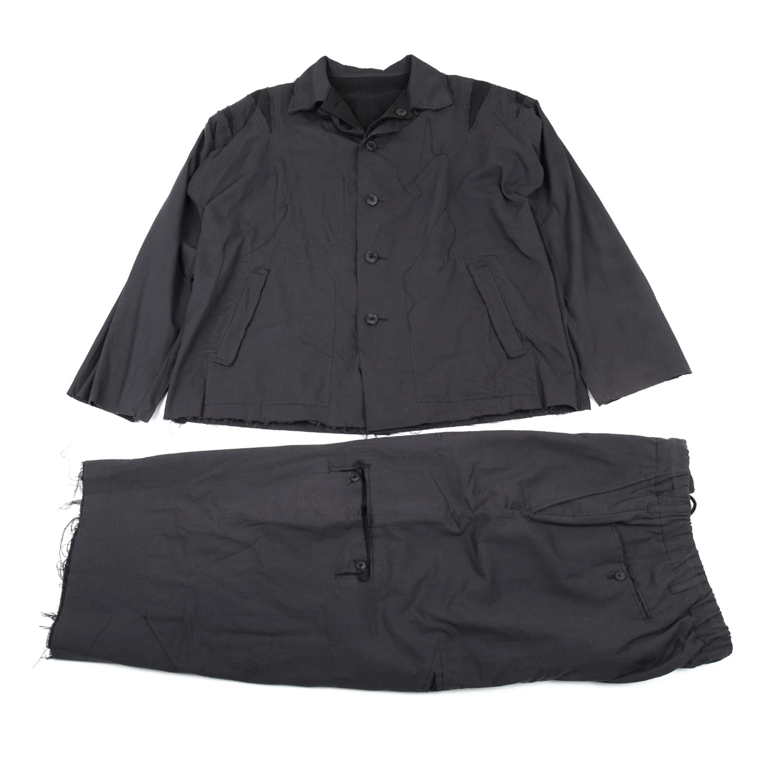 ヨウジヤマモト プールオムYohji Yamamoto POUR HOMME 異素材裁ち切りセットアップスーツ グレー黒2/5