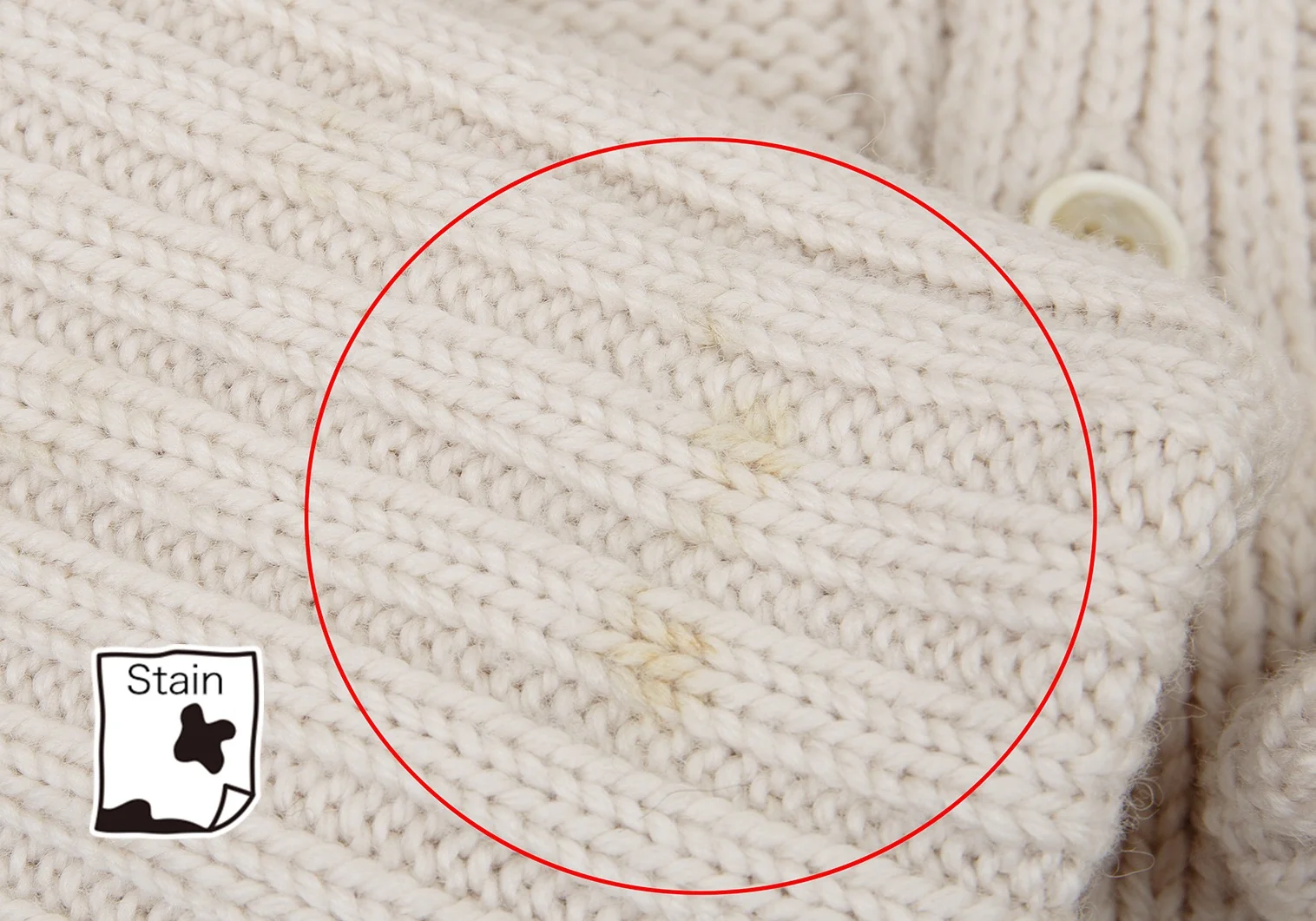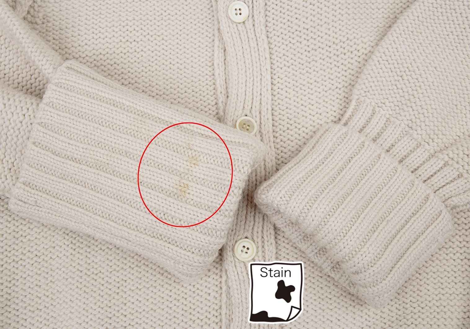 袖裏にシミがあります。(写真参照)その他目立ったシミ、汚れ、ほつれ等なくいい状態です。クリーニング済み
