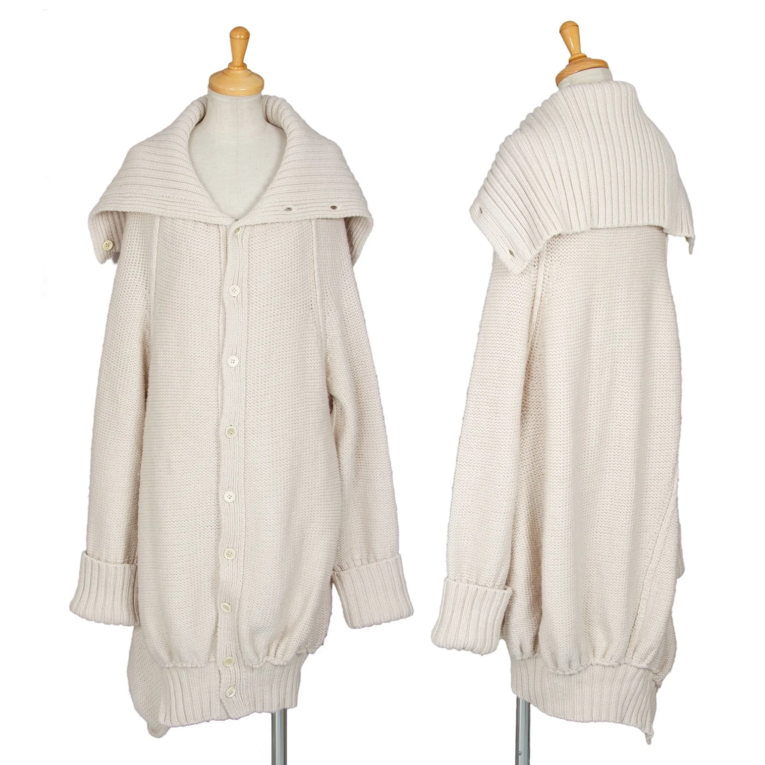 ワイズY’s ウールリブ切替ロングニットジャケット アイボリー3