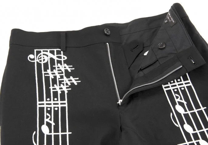 コムデギャルソン オムプリュスCOMME des GARCONS HOMME PLUS 音符刺繍デザインウールパンツ 黒SS