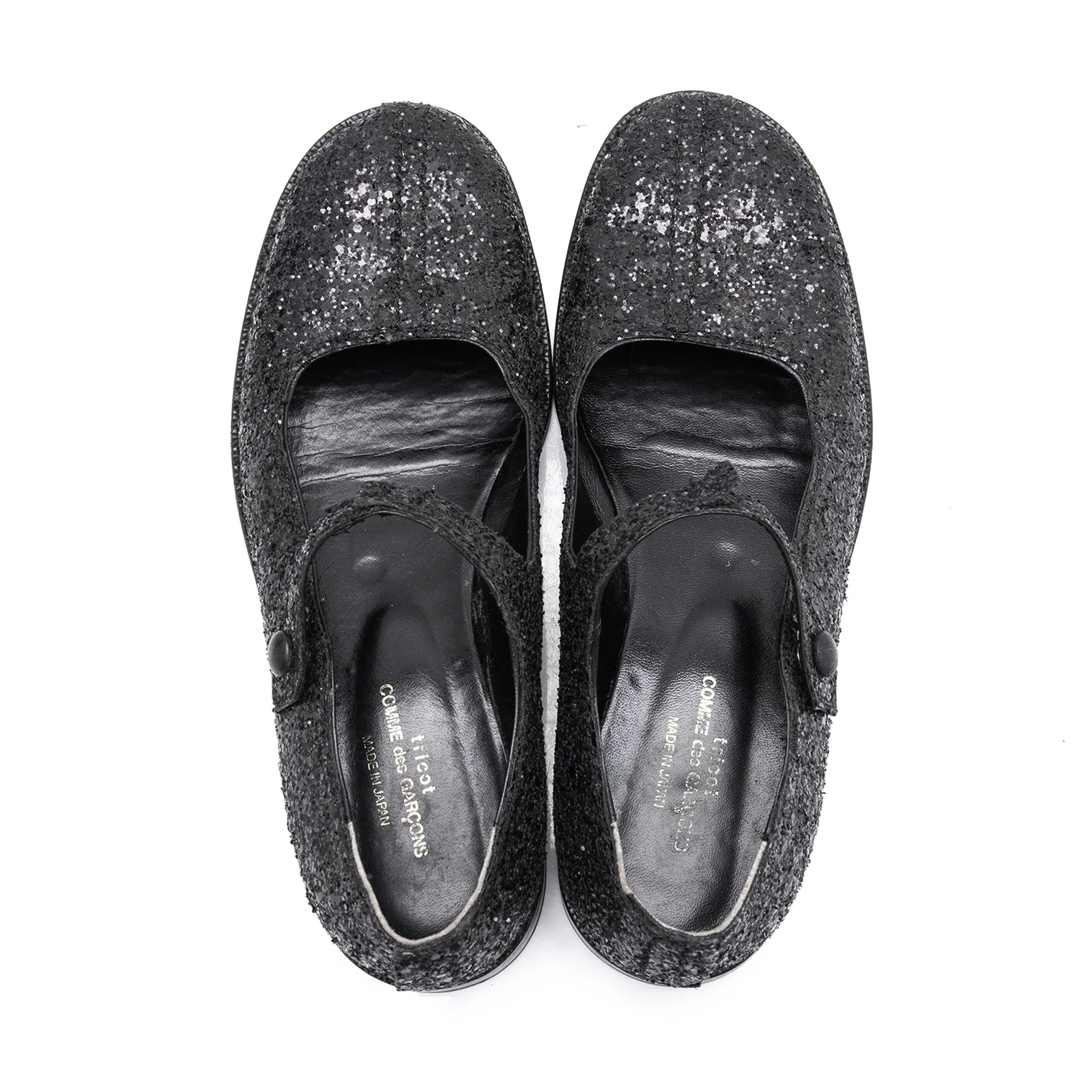 トリココムデギャルソンtricot COMME des GARCONS グリッターメリージェーンシューズ 黒23.5