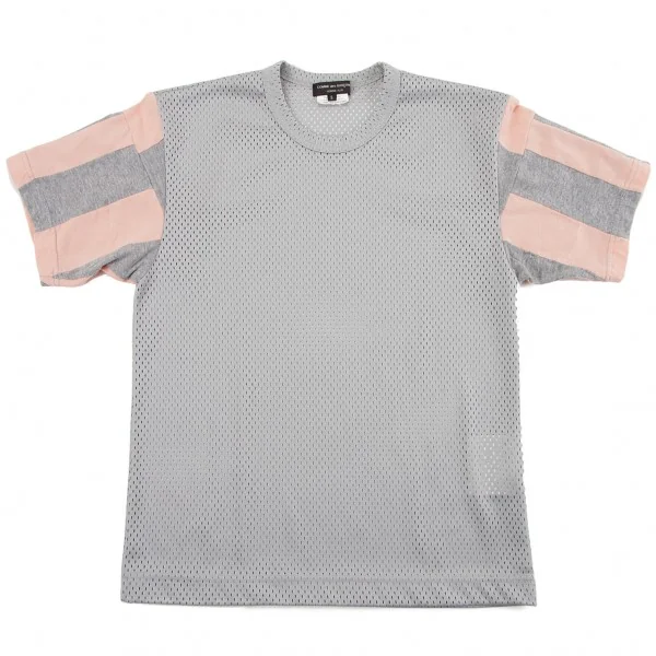 【SALE】コムデギャルソン オムプリュスCOMME des GARCONS HOMME PLUS メッシュ切替半袖カットソー グレーピンクS