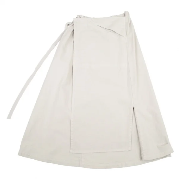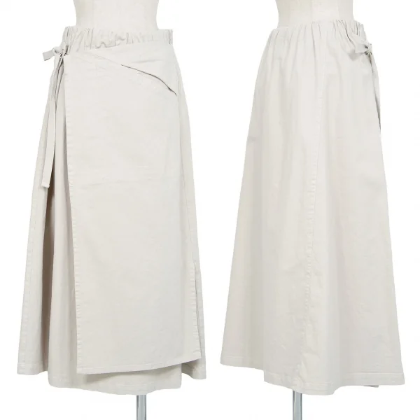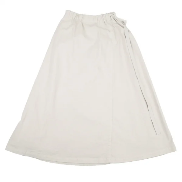 プランテーションPlantation コットンリネン製品染めハーフラップスカート グレーベージュM