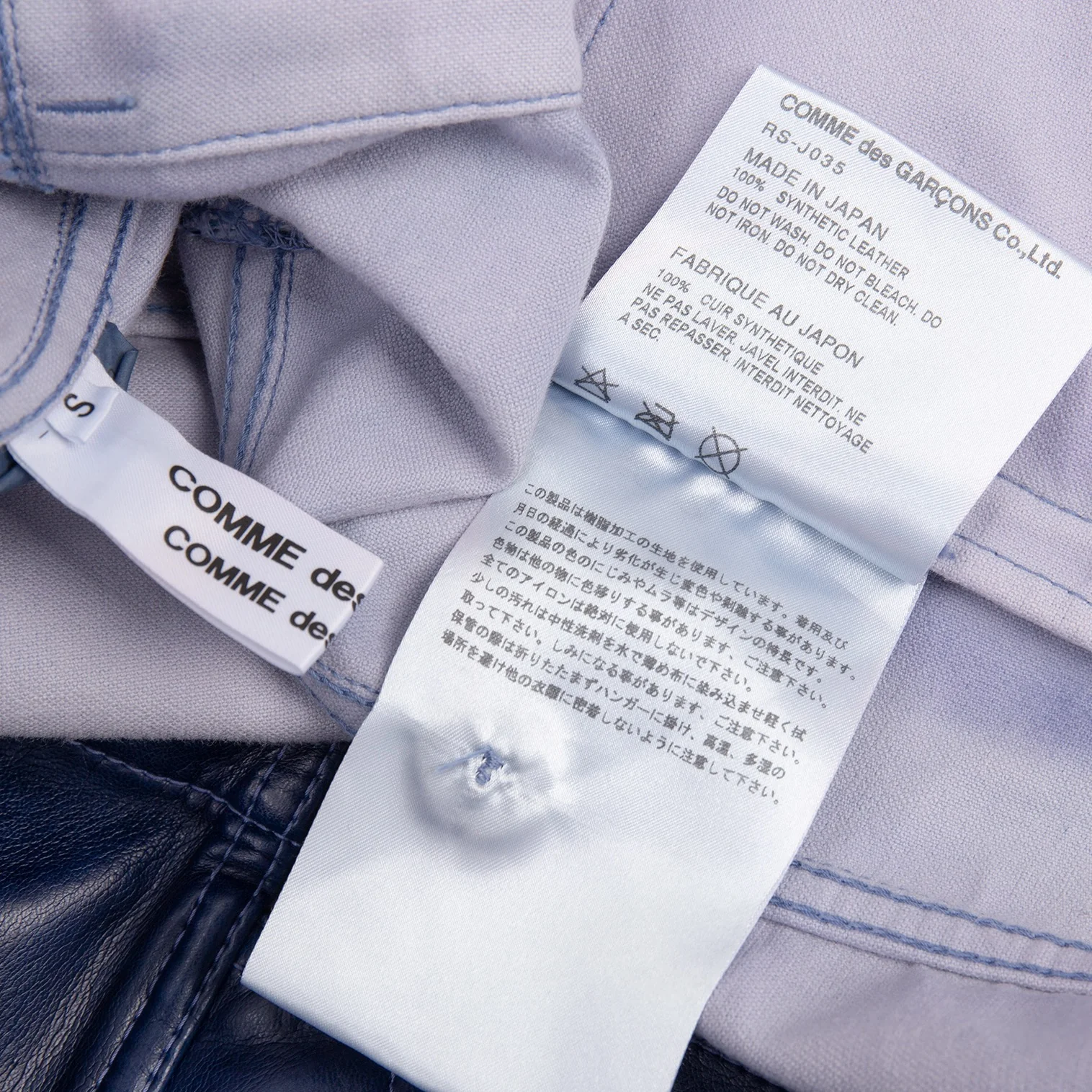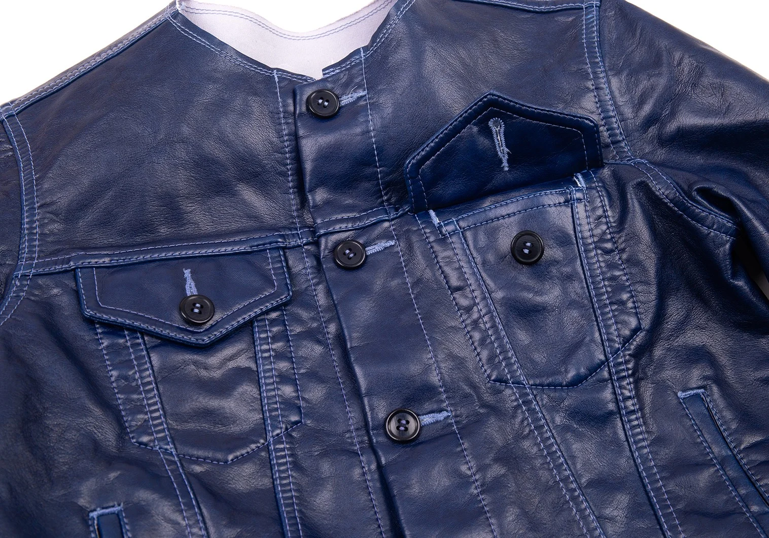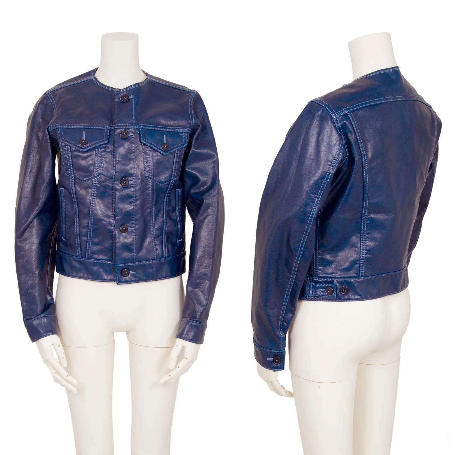 コムコム コムデギャルソンCOMME des GARCONS フェイクレザーノーカラートラックジャケット 青S